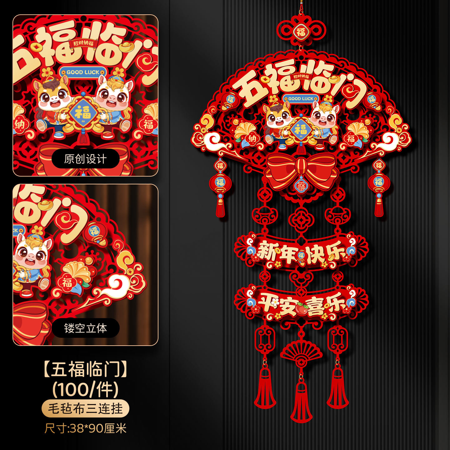 【五福临门】毛毡布三连挂 ¥638 9703套可售