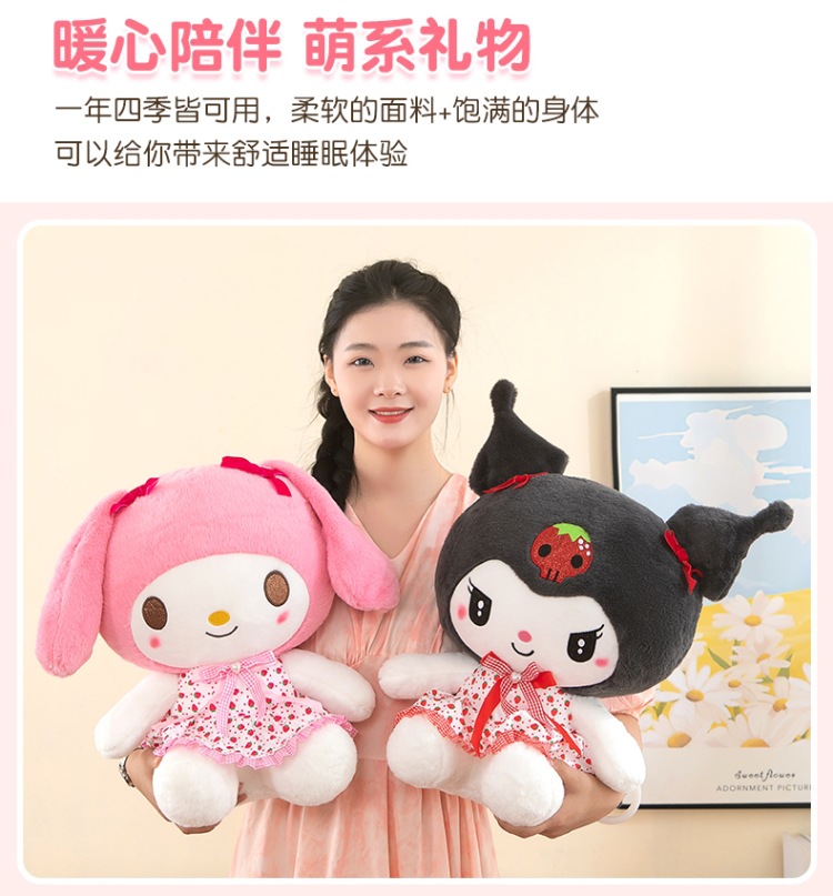 新款库洛米毛绒玩具可爱女生抱枕花裙美乐蒂公仔玉桂狗玩偶批发KT English | 投诉