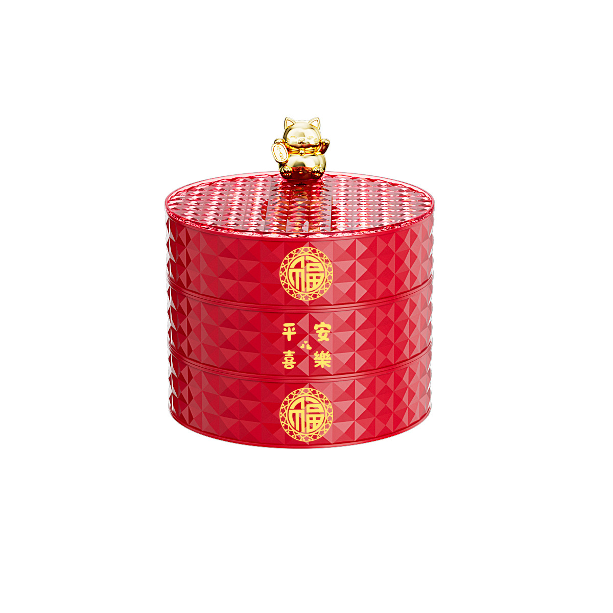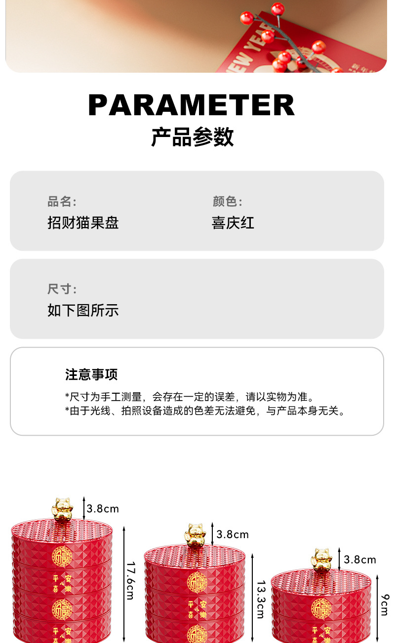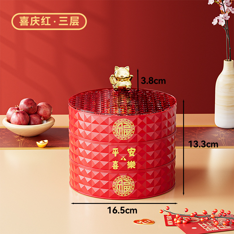 新年果盘轻奢招财猫家用客厅可旋转分格糖果盒干果盘坚果盒水果盘