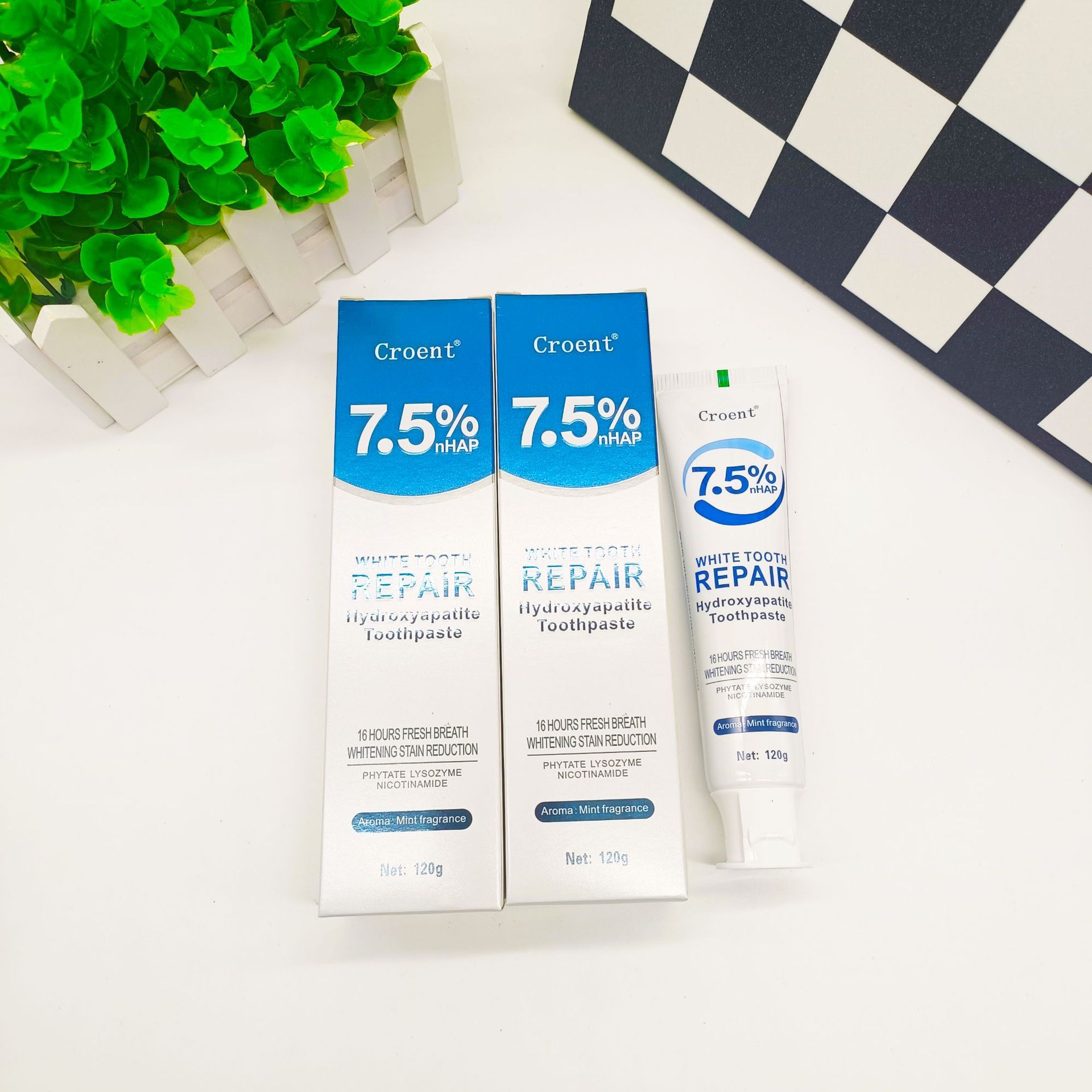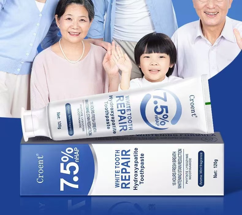 跨境专供Croent羟基磷灰石美白祛渍牙膏改善黄牙清新口气批发120g