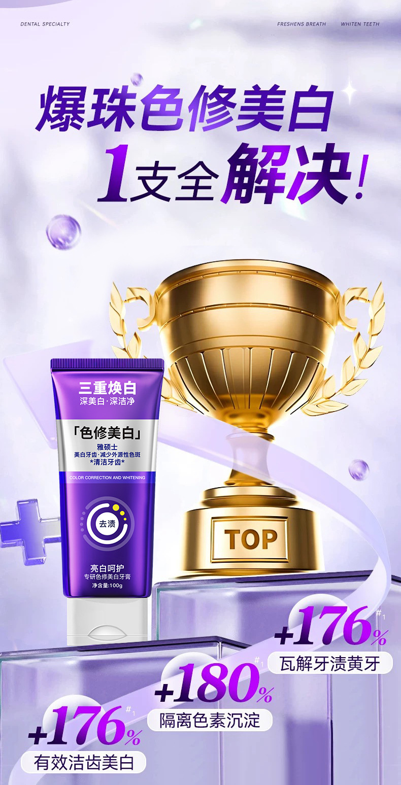 【抖音同款】色修净齿牙膏深层清洁温和清新口气色修爆珠变色牙膏 投诉