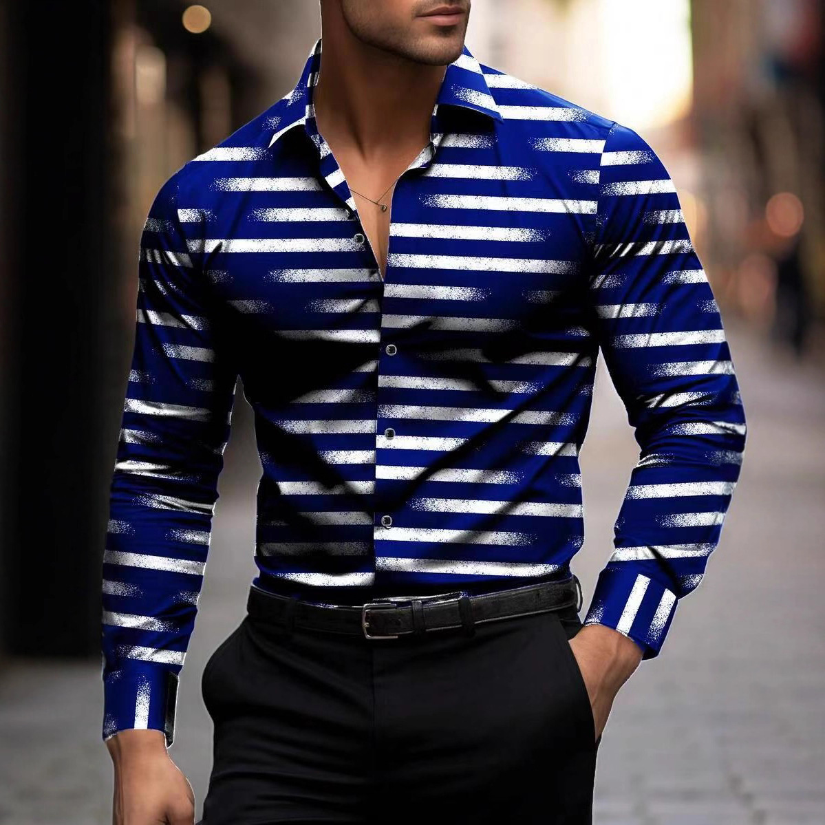条纹衬衫男