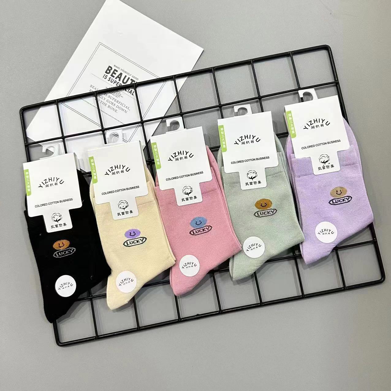 秋冬季新款男女士休闲商务中筒袜子成人纯色字母吸汗透气中腰棉袜 投诉
