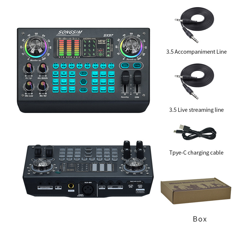 48V直播声卡蓝牙唱歌录音手机电脑声卡厂家直销 SX97英文跨境款