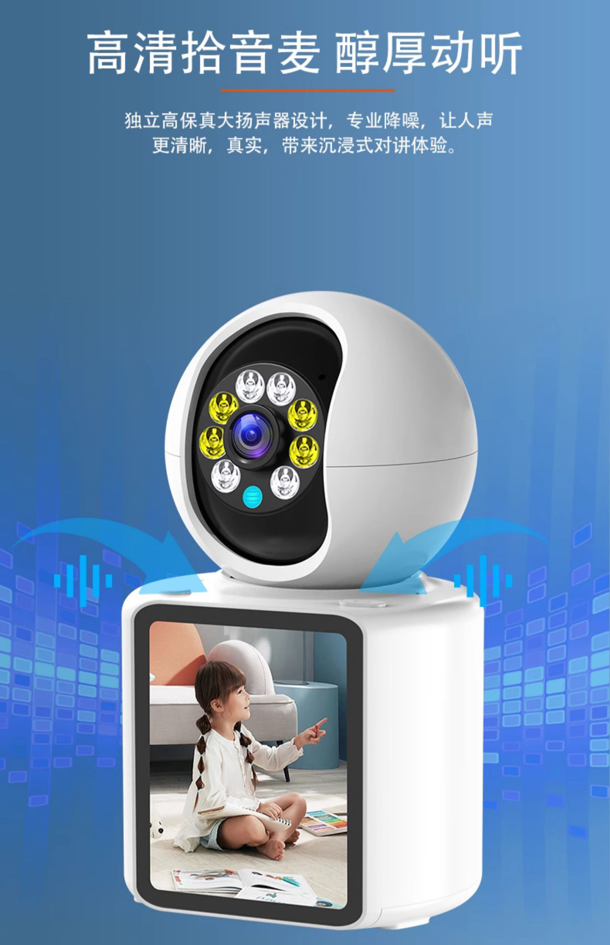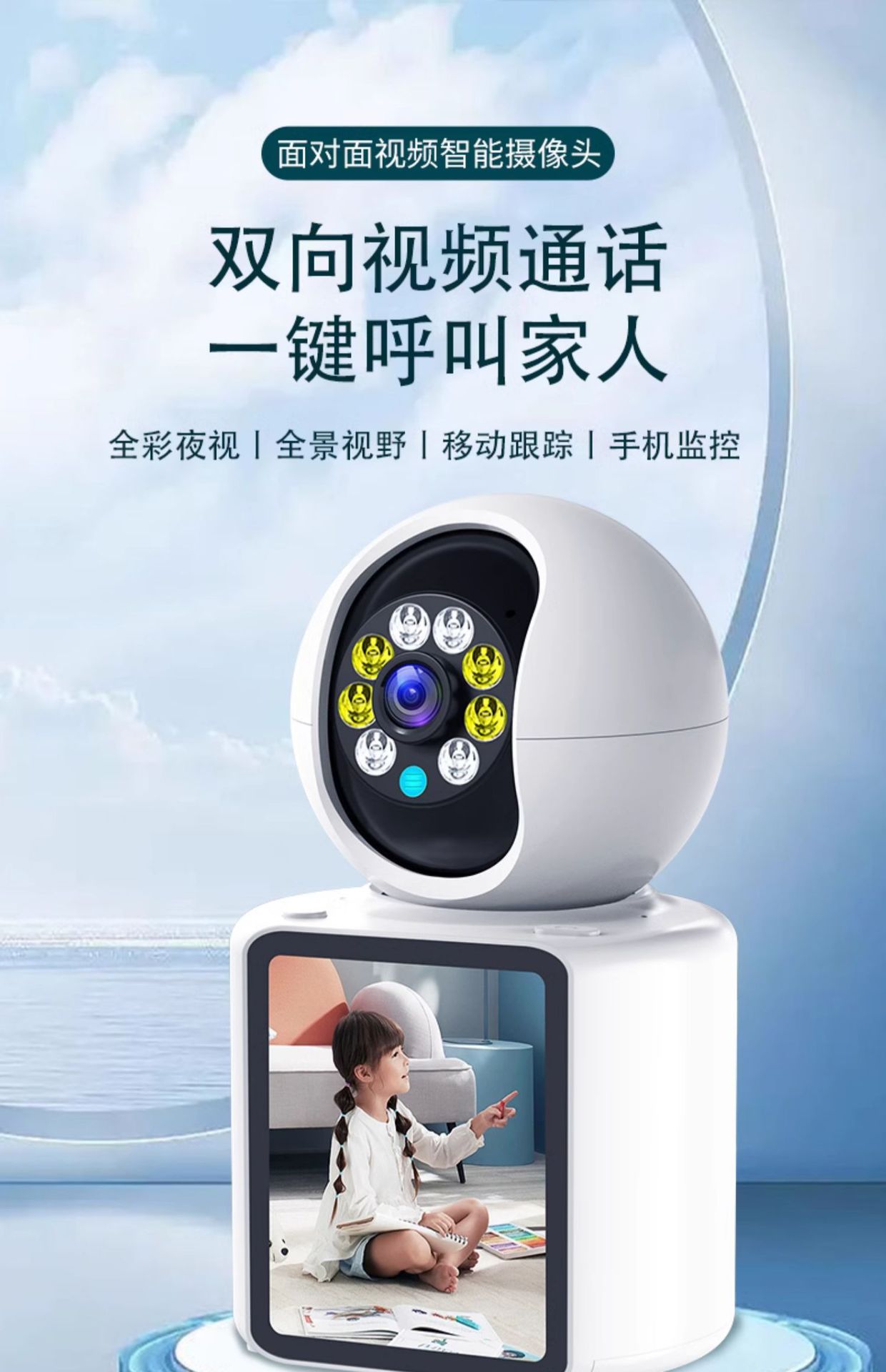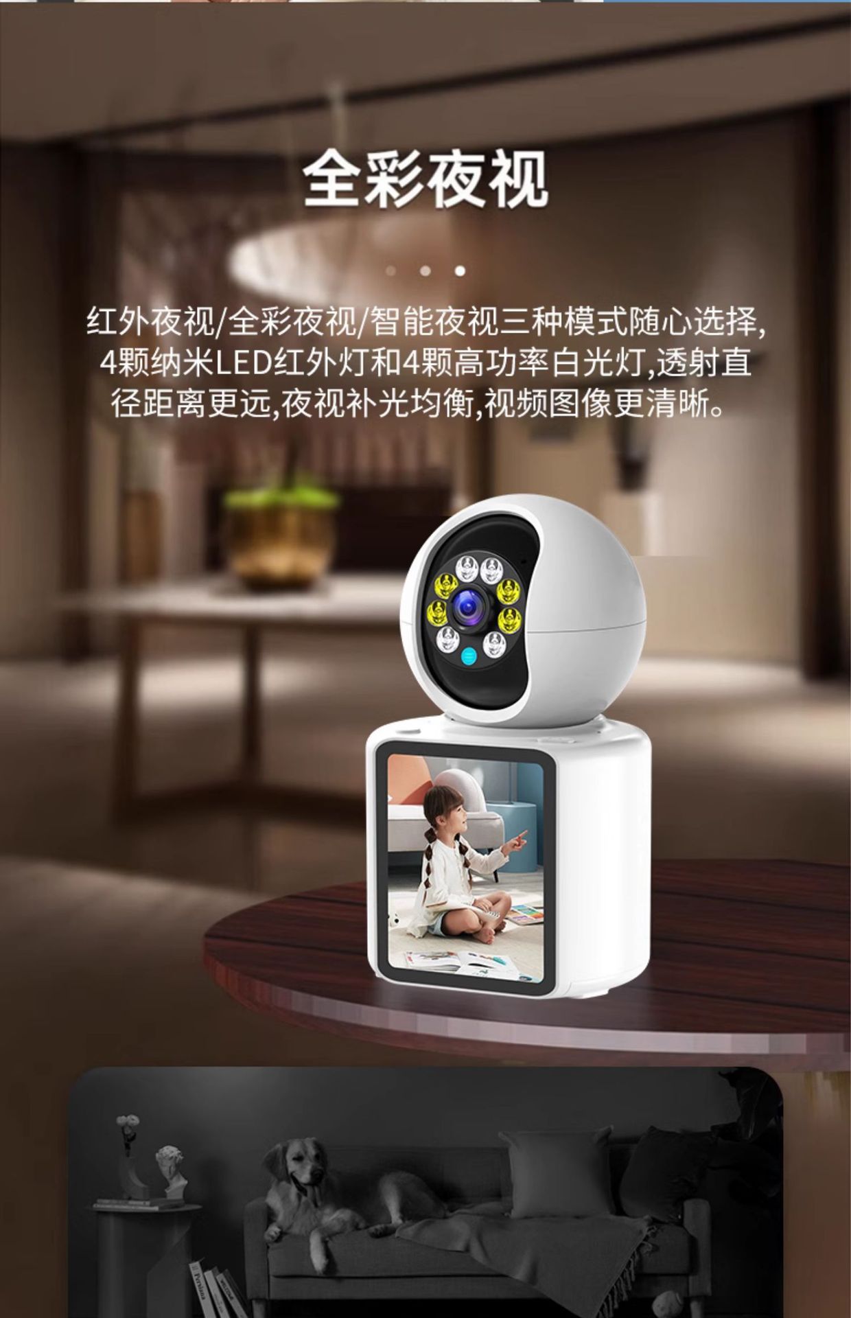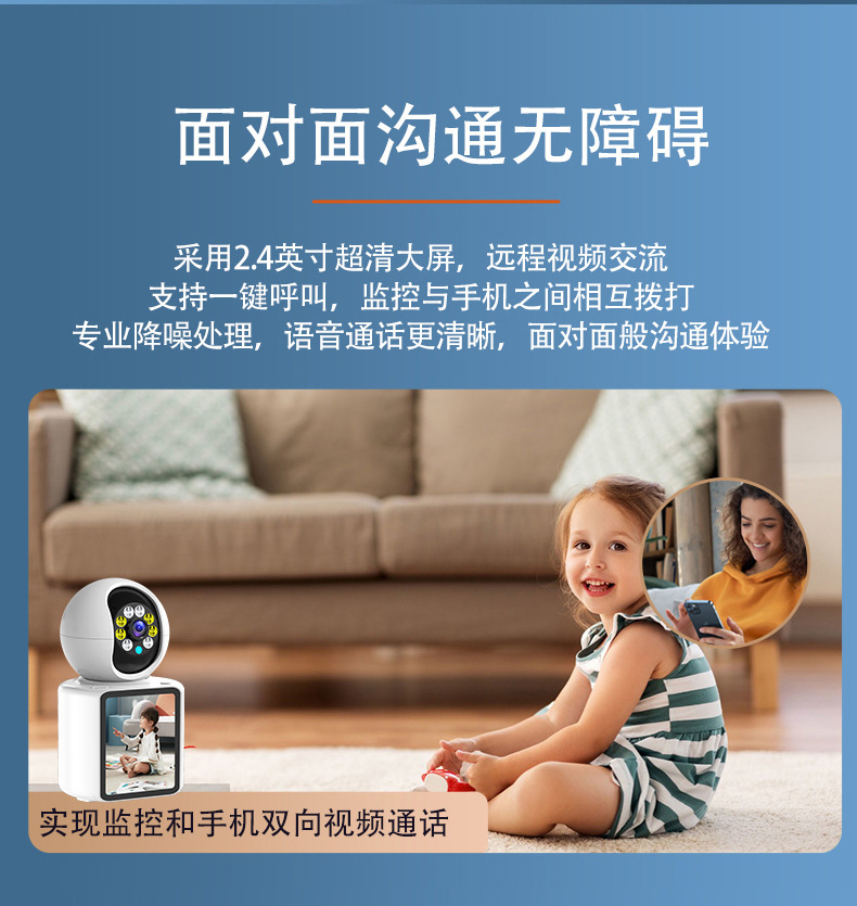 家用双向视频通话无线WiFi监控摄像头智能婴儿宠物看护器高清全彩 English | 投诉