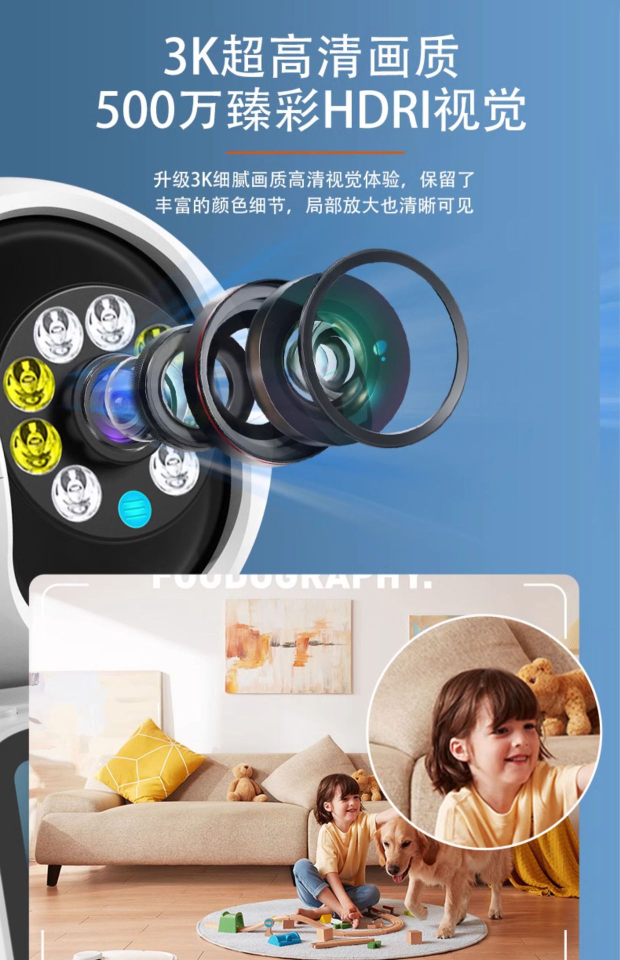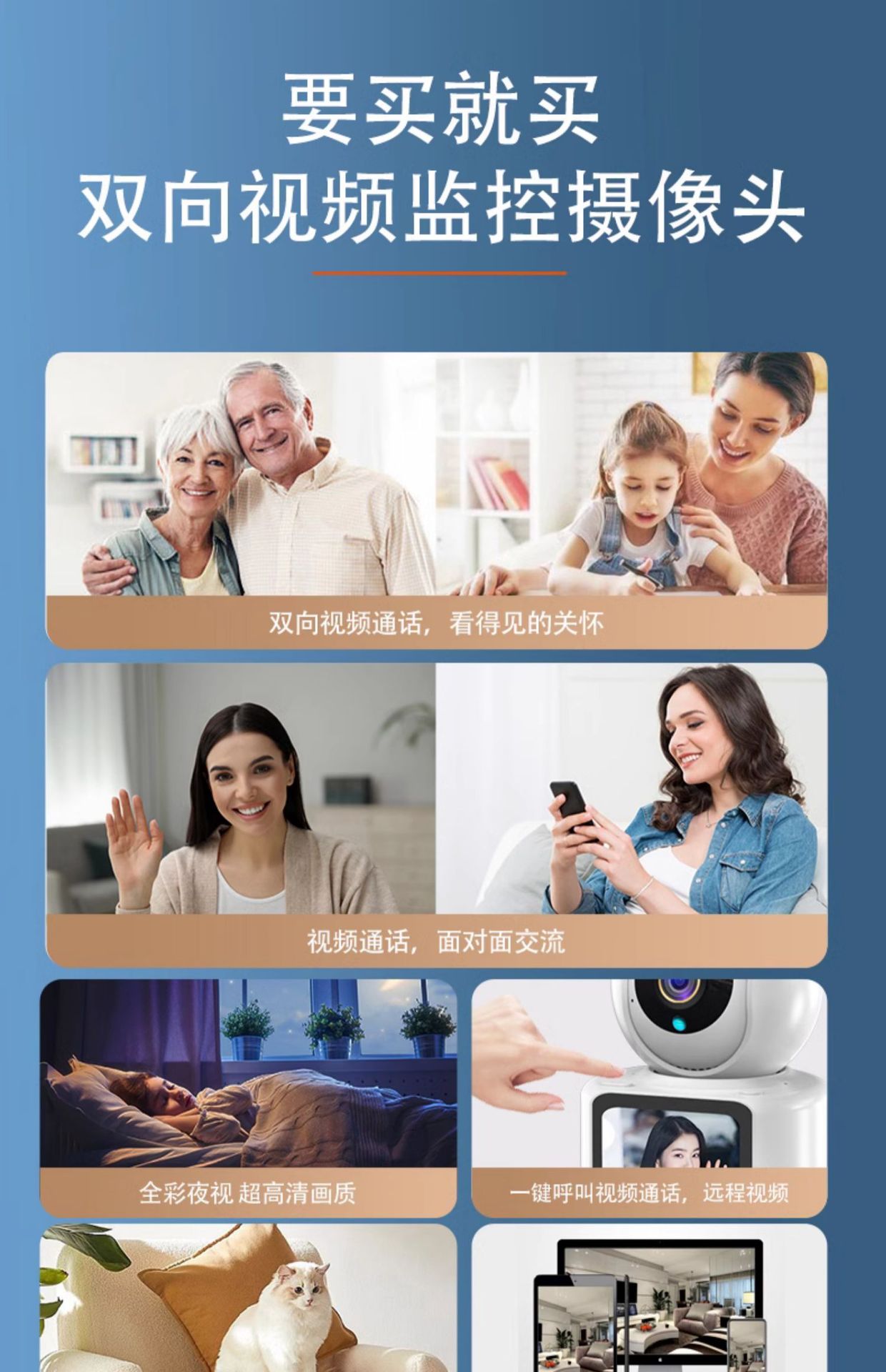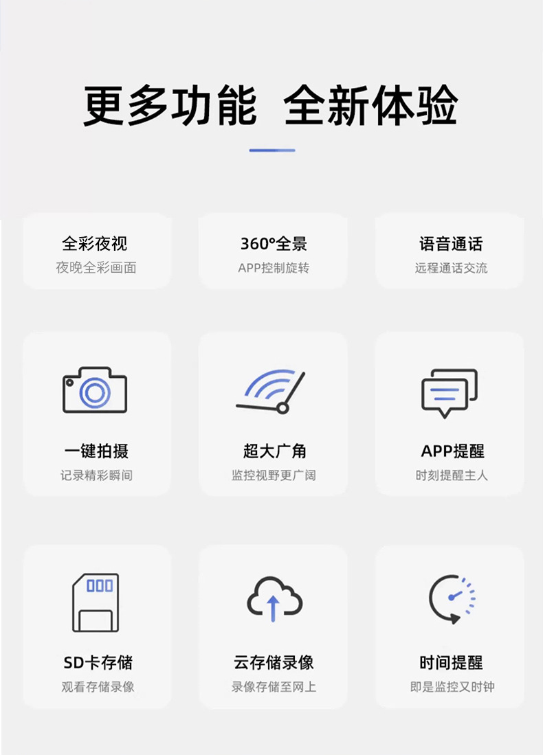 家用双向视频通话无线WiFi监控摄像头智能婴儿宠物看护器高清全彩 English | 投诉