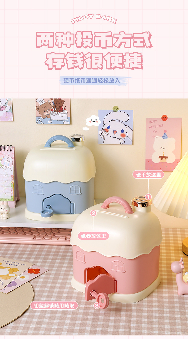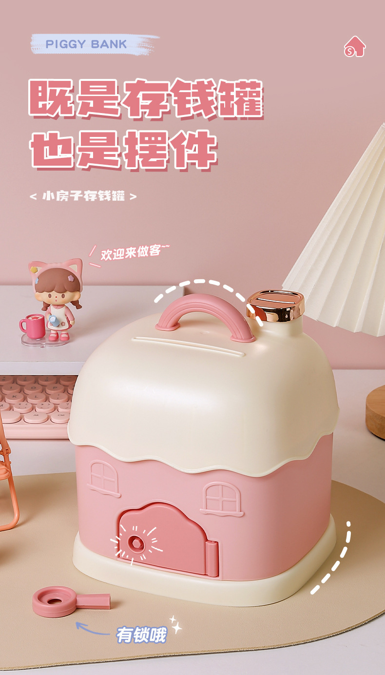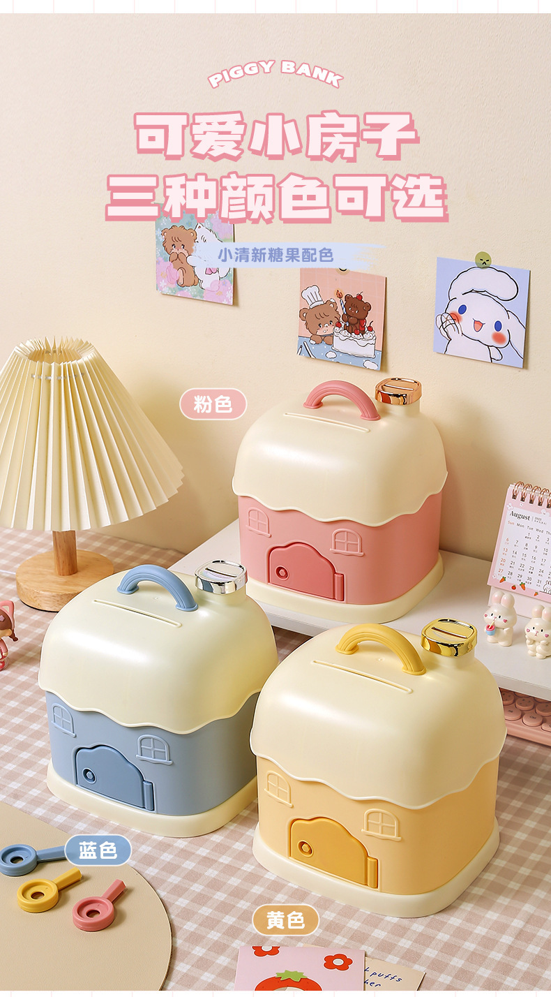 储蓄罐日系卡通迷你小型可爱女生存钱罐塑料2023新年小屋手提盒子 English | 投诉
