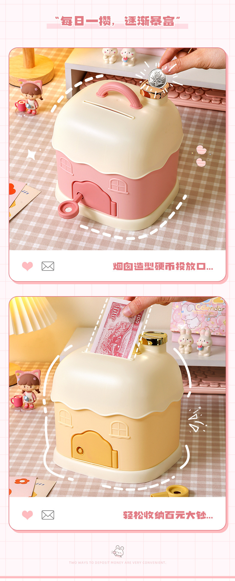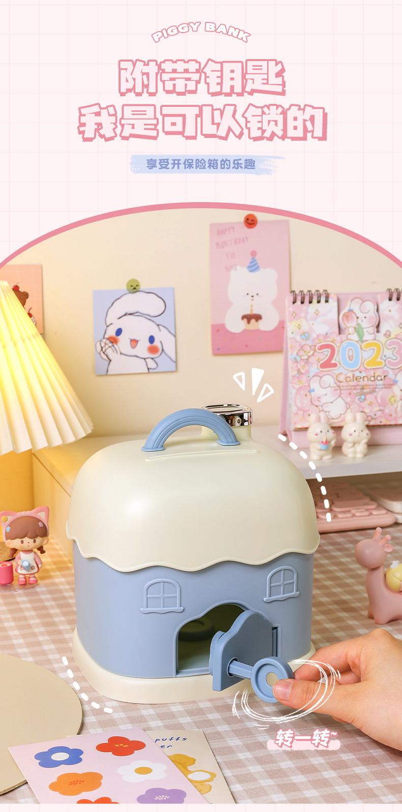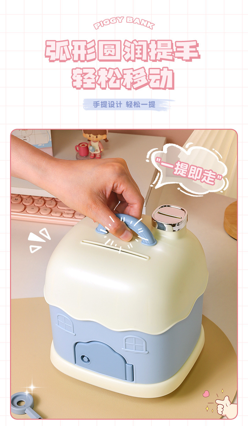 储蓄罐日系卡通迷你小型可爱女生存钱罐塑料2023新年小屋手提盒子 English | 投诉