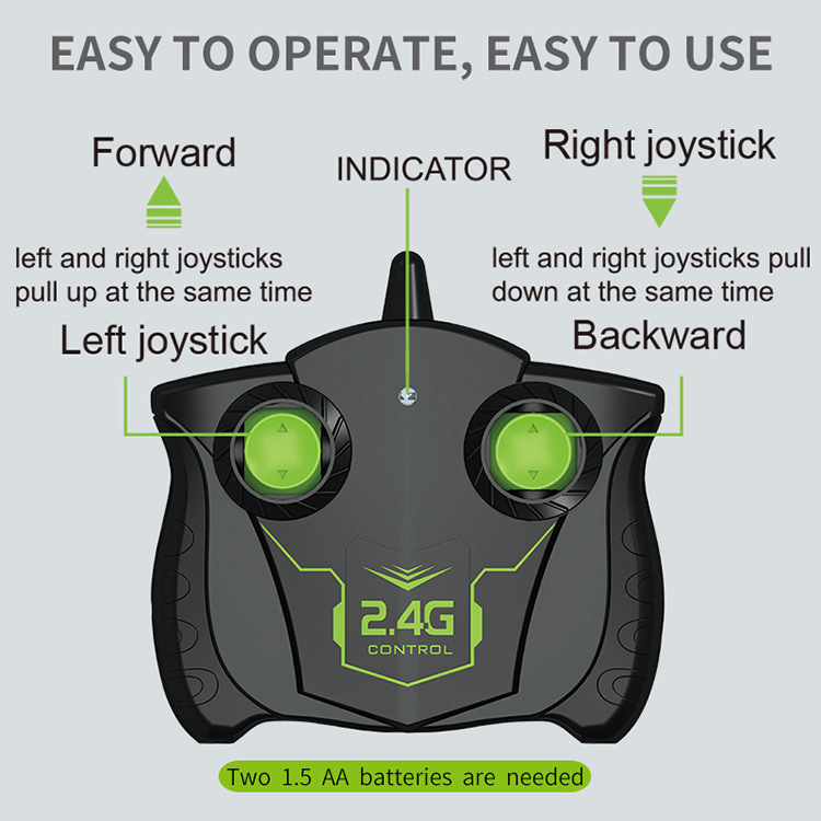 前进、后退。轮子可左右摆动跟旋转,左360度旋转,右360度旋转,360度弹跳旋转。 (带灯光)