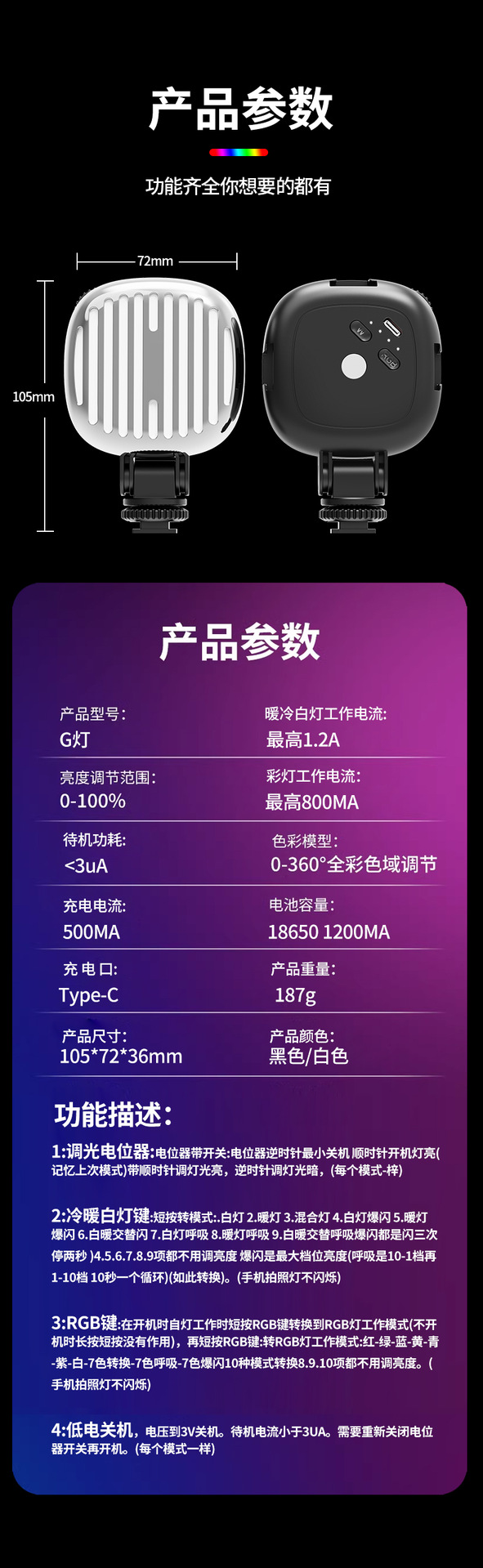 G款手机补光灯 亚马逊TEMU爆款便携式LED补光灯 自拍摄影口袋灯