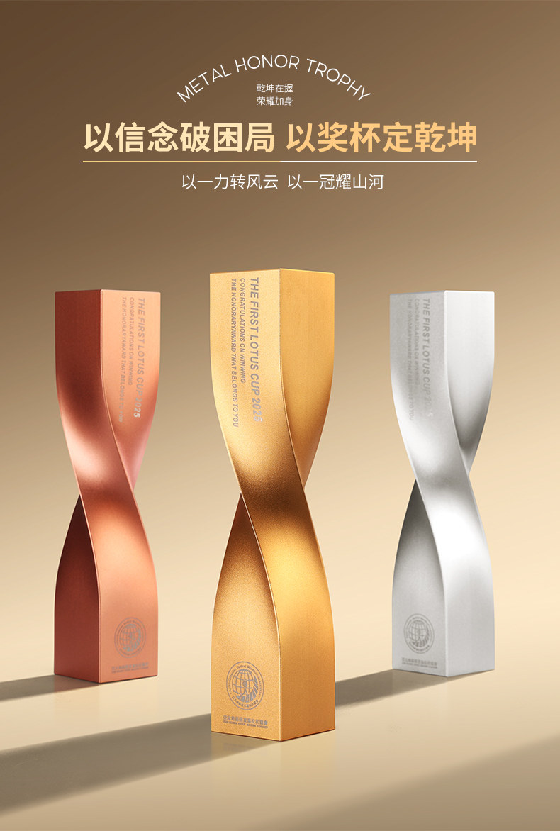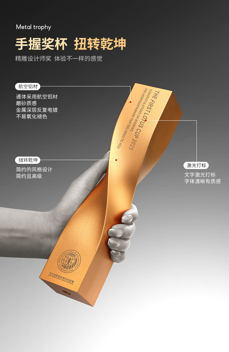 高档金属扭转乾坤定制奖杯新款奖牌企业优秀员工年会颁奖创意奖杯 投诉