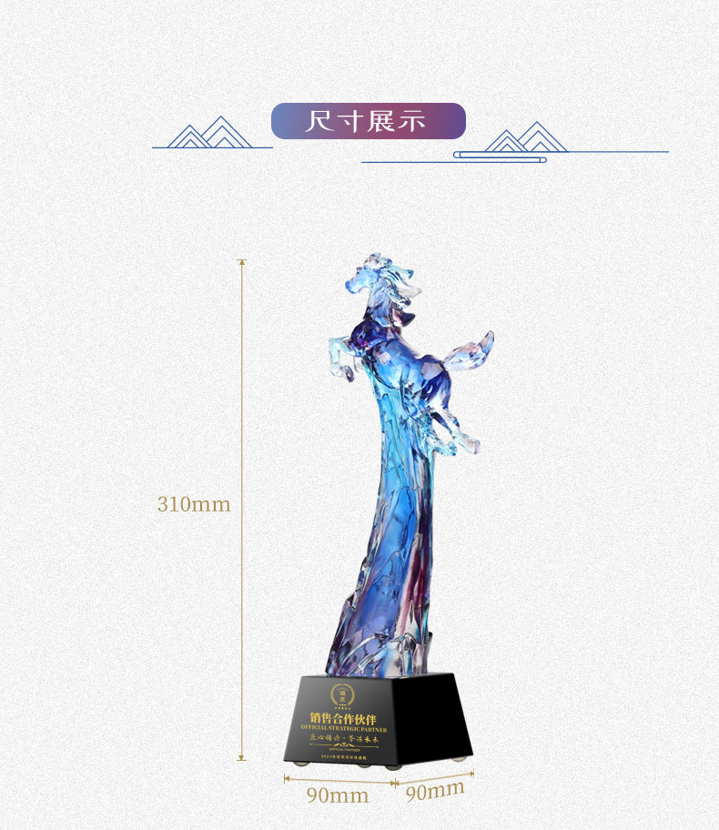 琉璃奖杯定制高档创意马到成功奖杯年会颁奖纪念品水晶订制定做 投诉