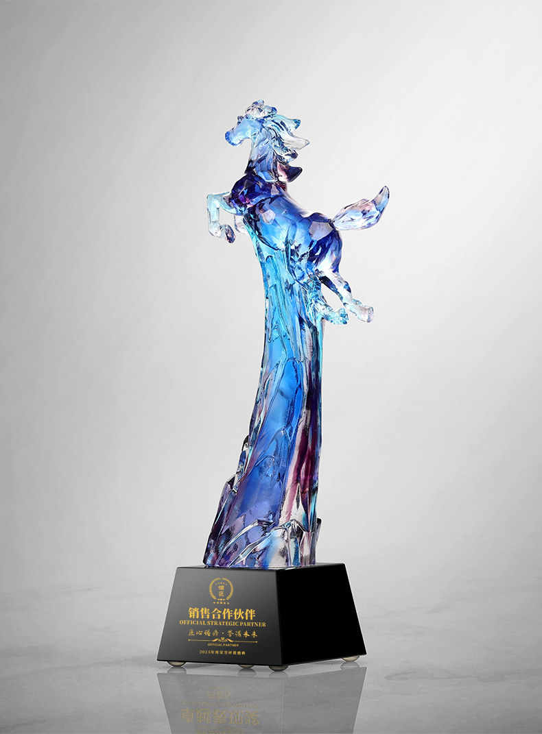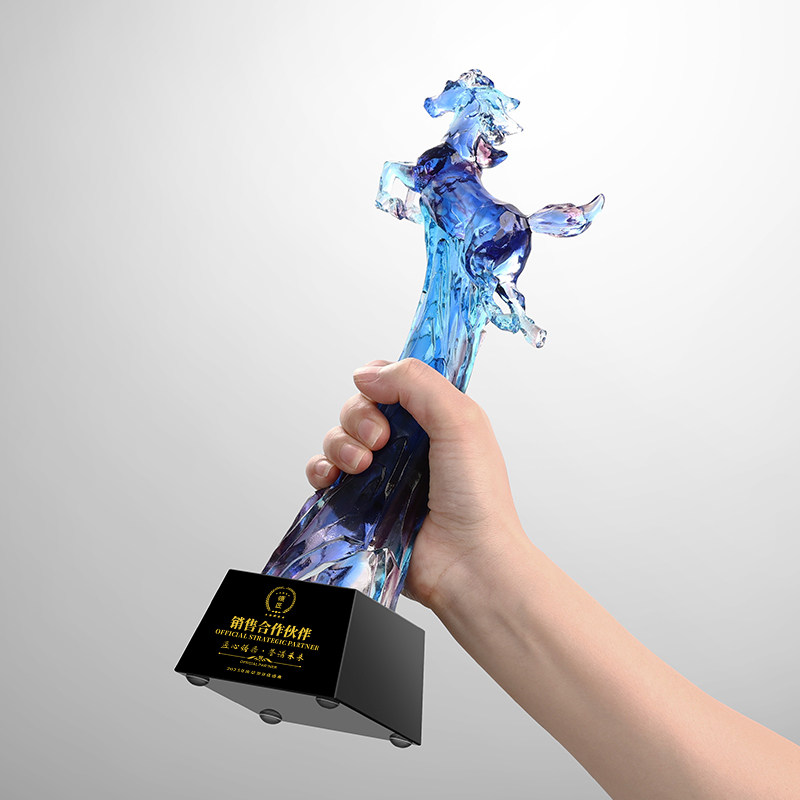 琉璃奖杯定制高档创意马到成功奖杯年会颁奖纪念品水晶订制定做