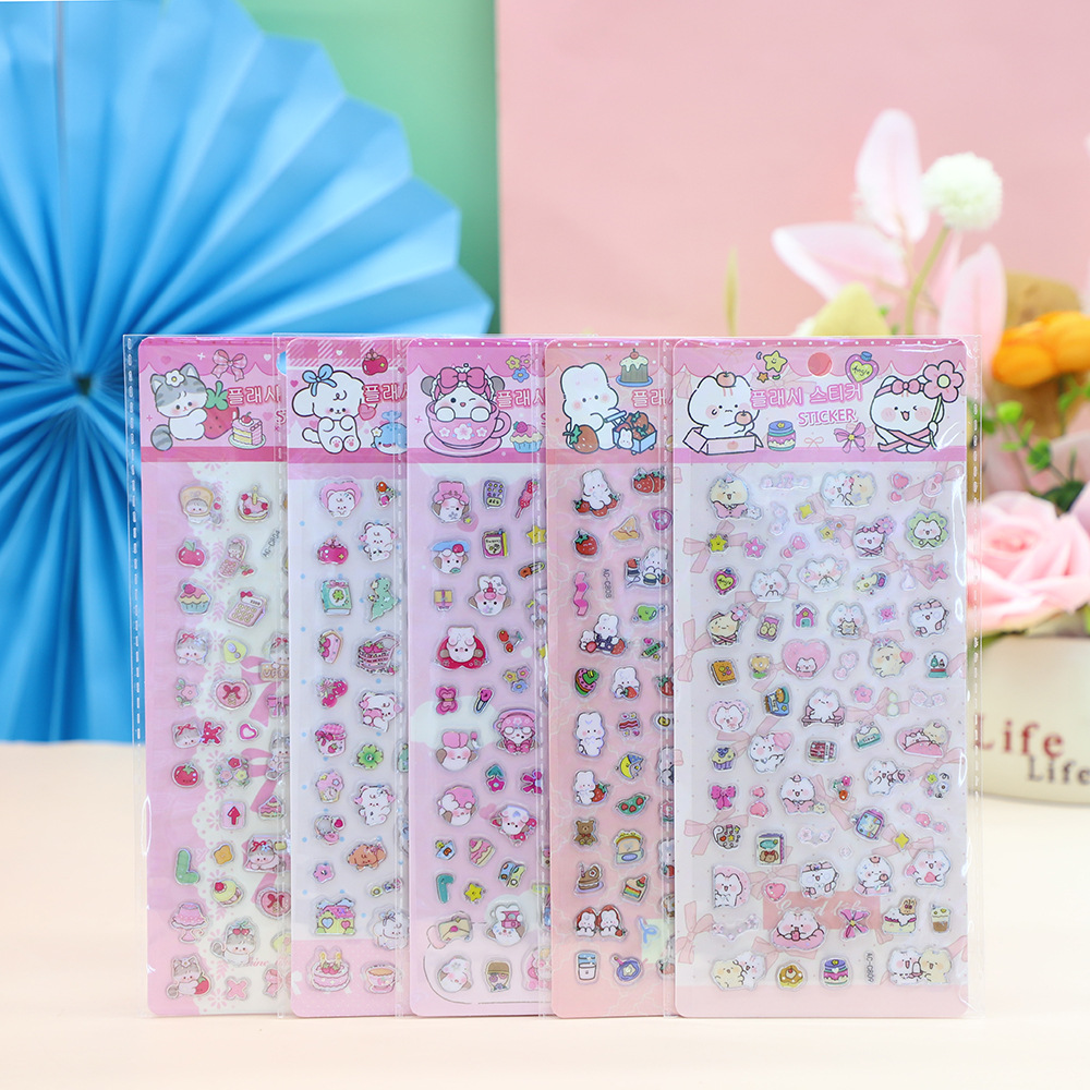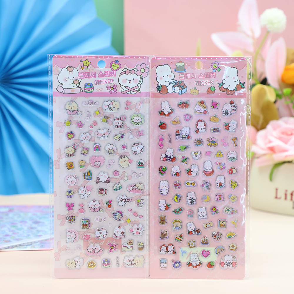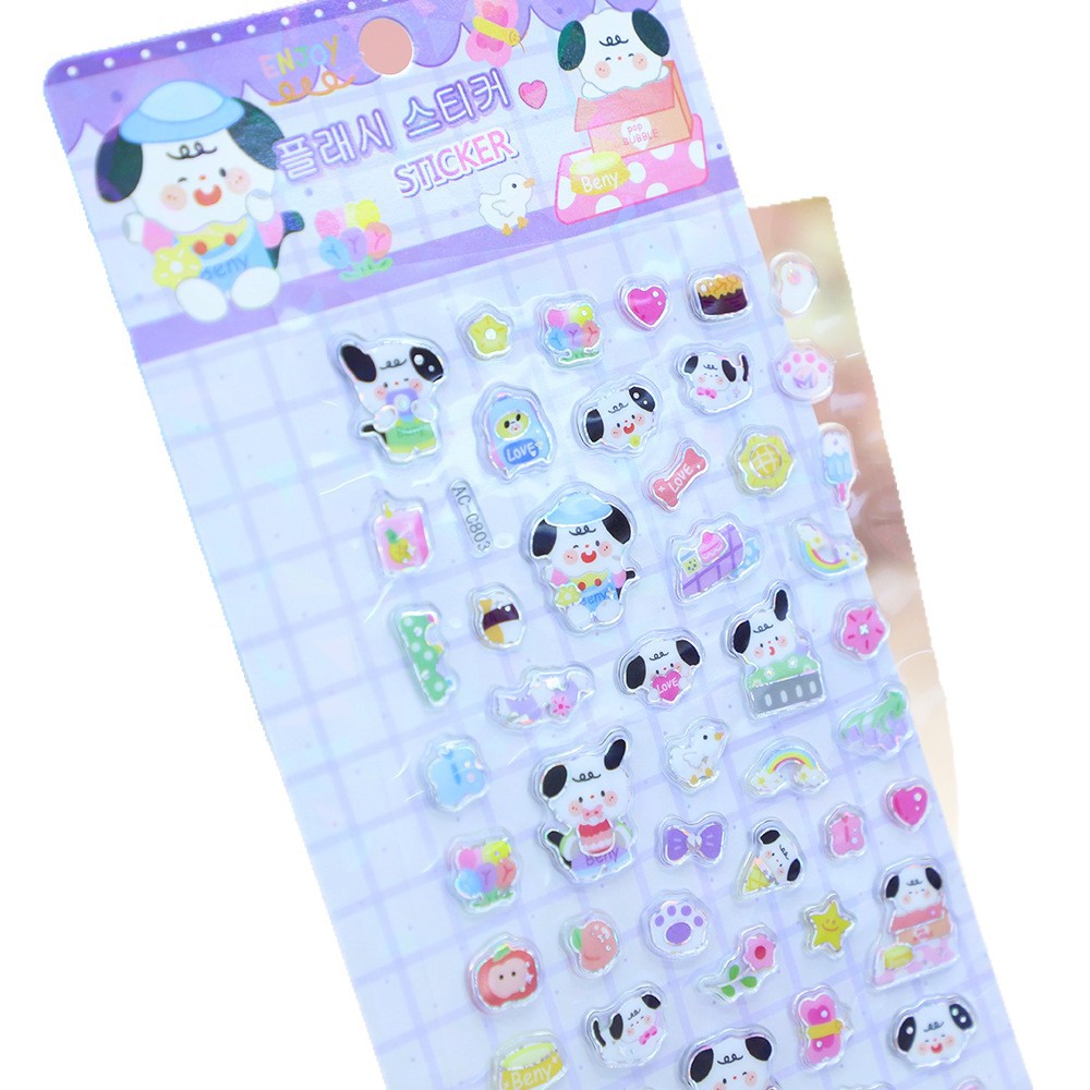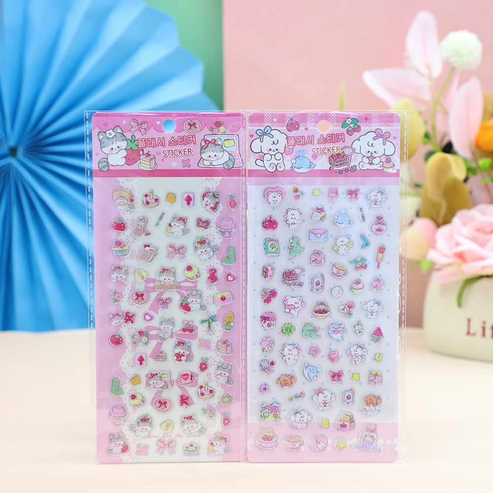 儿童卡通3D立体闪动镭射贴纸贴纸小颗粒贴纸浮雕DIY手账贴纸 English | 投诉