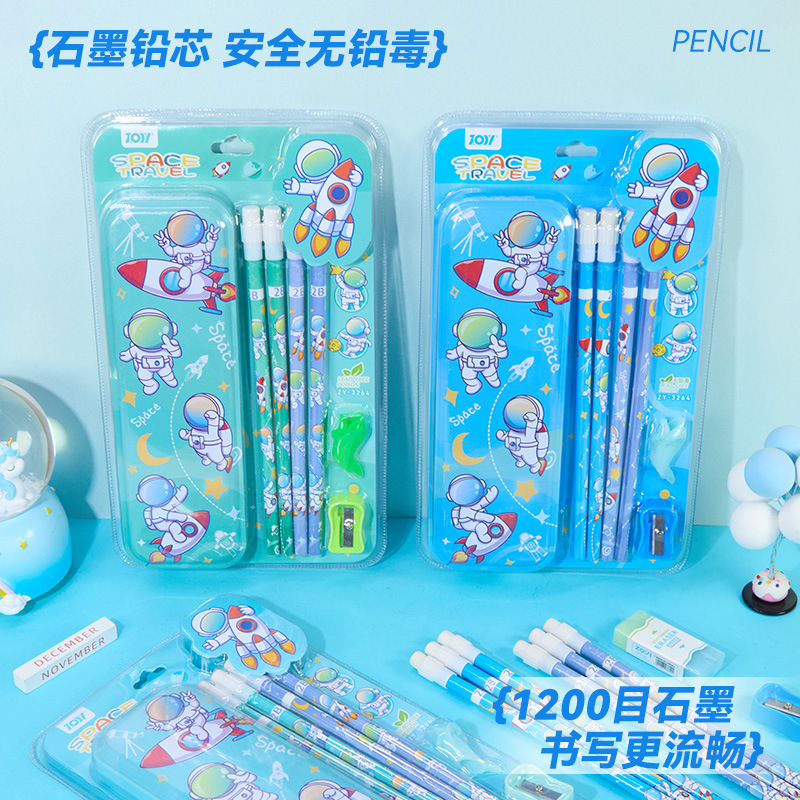 跨境卡通文具套装男孩开学文具开学季礼品小学生奖品铅笔套装文具