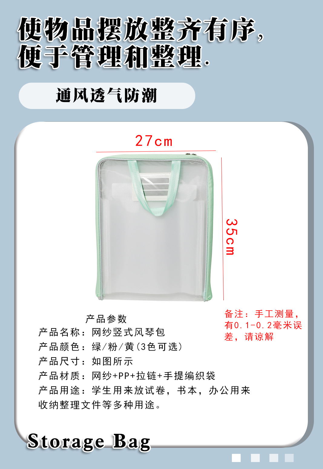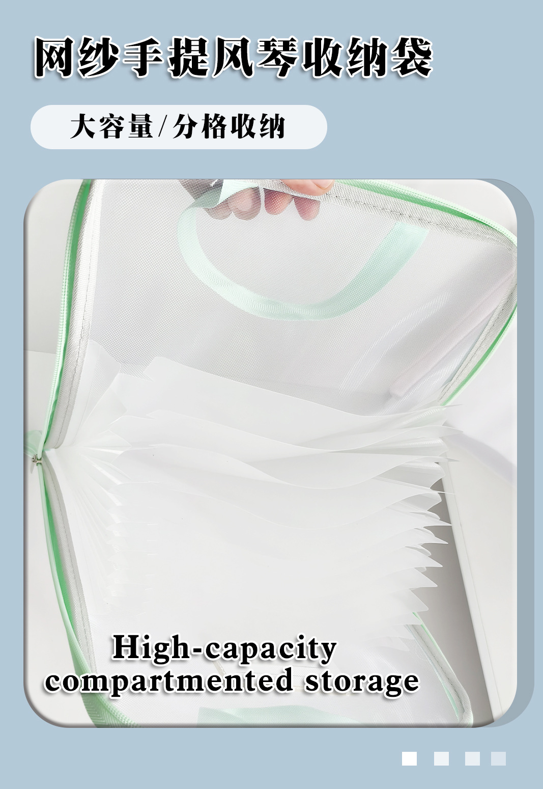 材质: 网纱 品牌: IDEALINK 尺寸: a4 格数: 13 材质厚度: 35 型号: 655 货号: 手提L型科目袋 加印LOGO: 可以 加工定制: 是 颜色: 竖式风琴包-粉,竖式风琴包-蓝,竖式风琴 主要下游平台: ebay,亚马逊,wish,速卖通,LA 主要销售地区: 欧洲,南美,东南亚,北美,中东 有可授权的自有品牌: 否 是否跨境出口专供货源: 是 是否属于礼品: 否 是否专利货源: 否 是否IP授权: 否 生产企业: 升华 重量: 0.2 kg/个