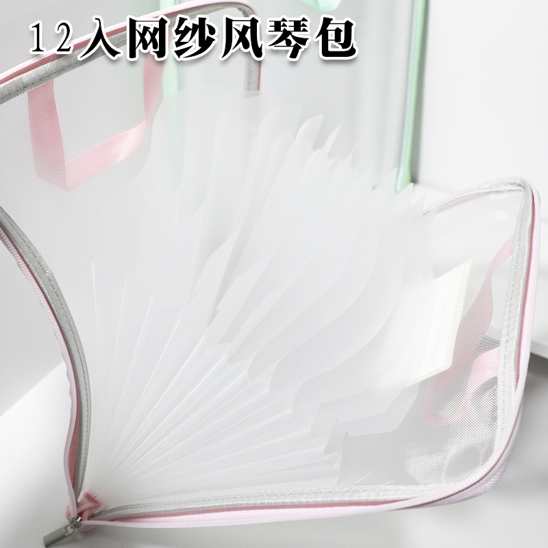 手提L型13大容量风琴包 学生办公文具整理包 办公尼龙网纱文件袋
