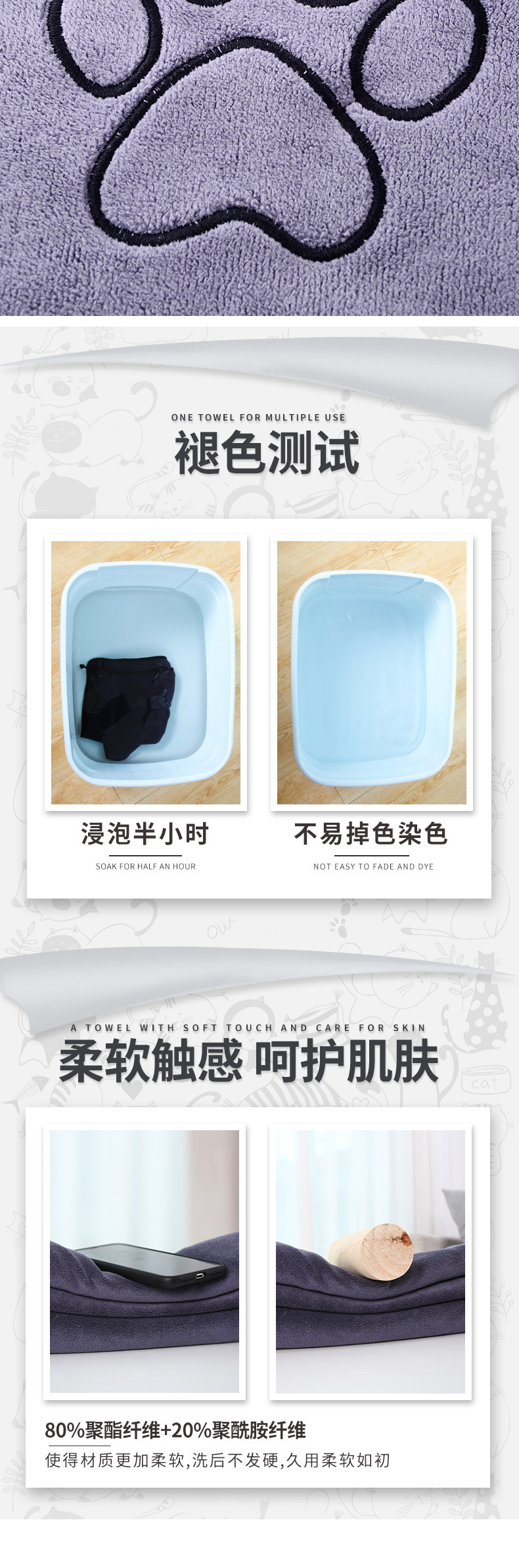 G879超细纤维毛巾厂家定制强吸水狗爪卡通狗巾动物洗澡巾定制logo English | 投诉