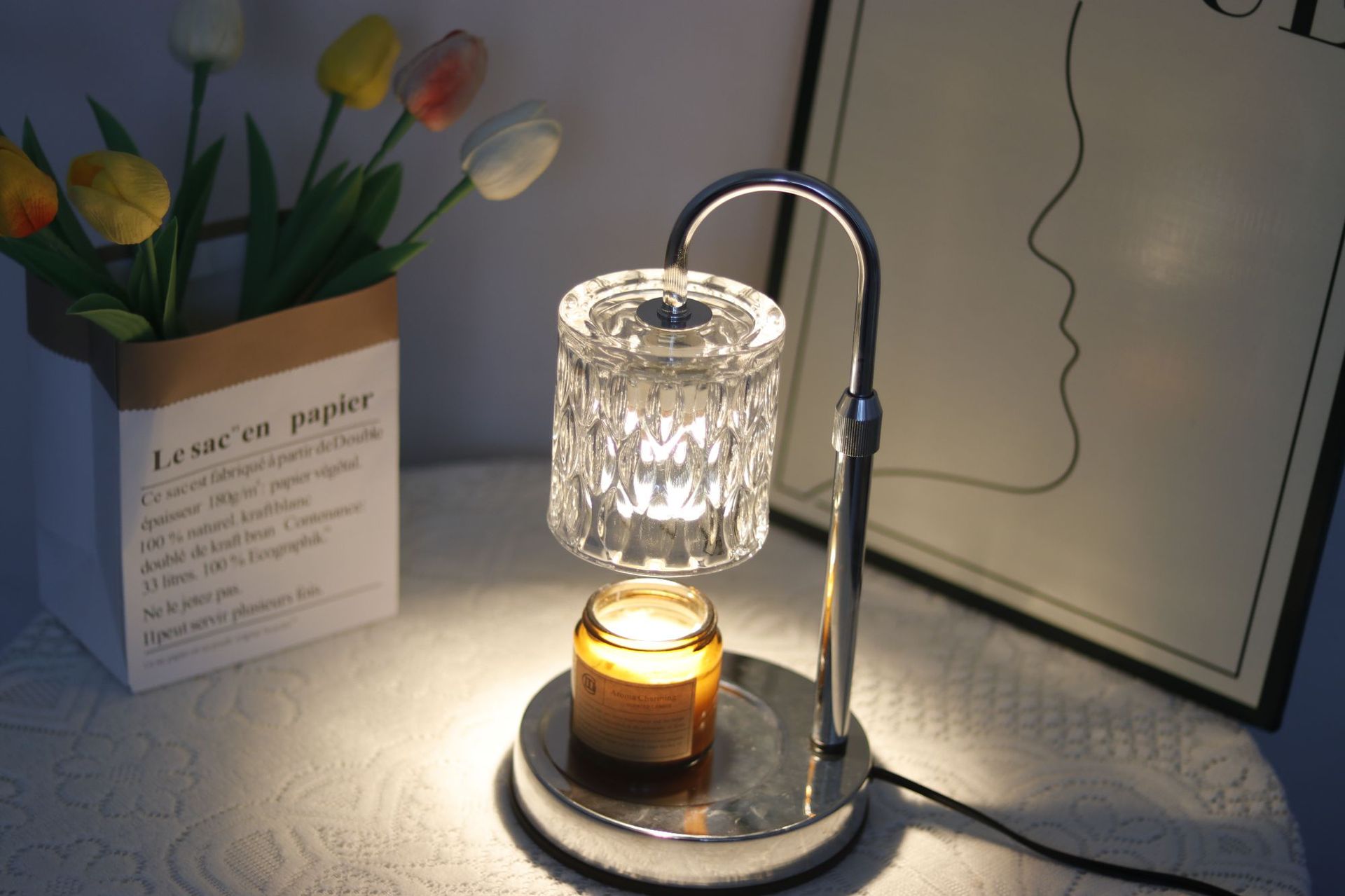 本灯具不配带香薰蜡烛,请您自行购买。本灯具用的是GU10灯泡,下单即赠送2个50瓦卤素灯泡。