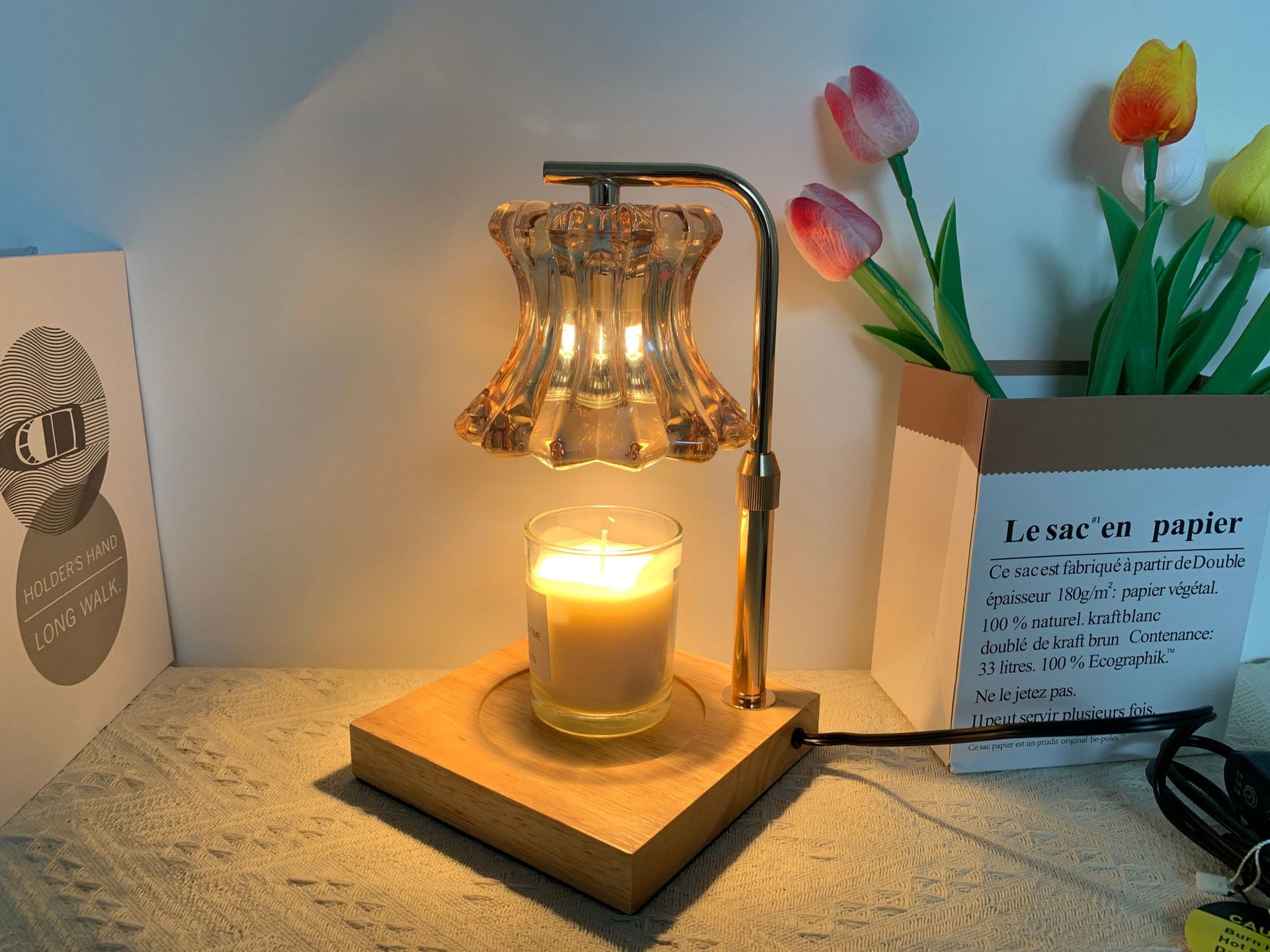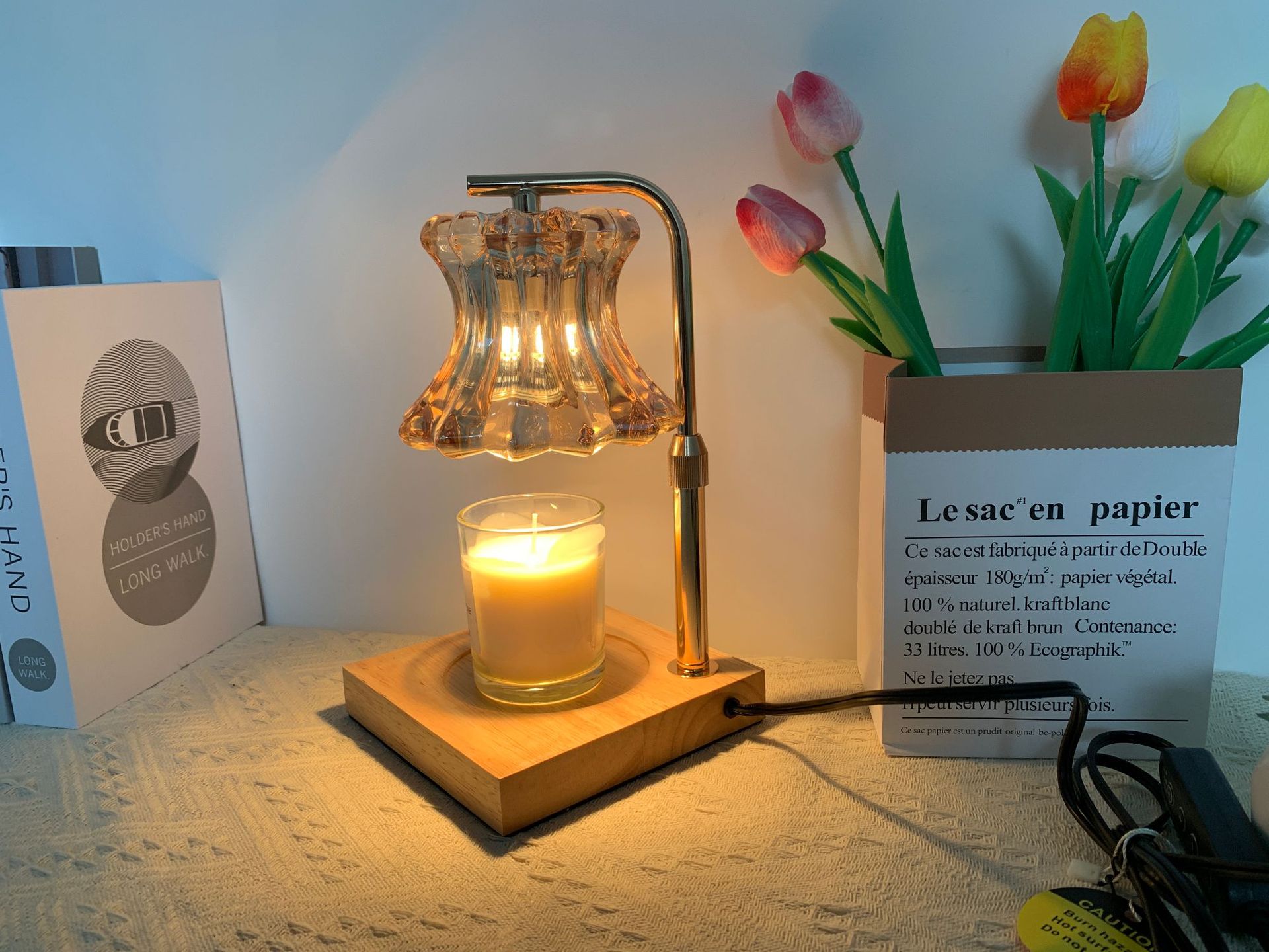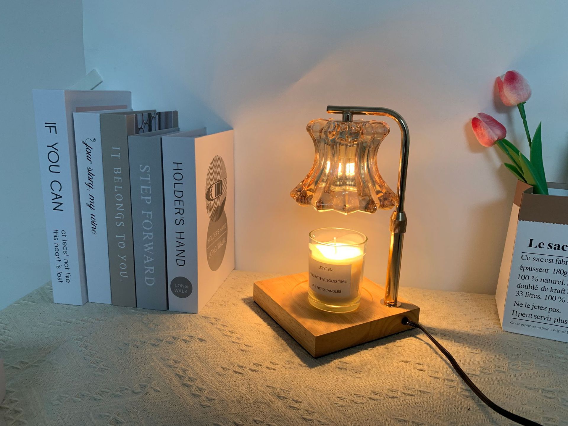 本灯具不配带香薰蜡烛,请您自行购买。本灯具用的是GU10灯泡,下单即赠送2个50瓦卤素灯泡。