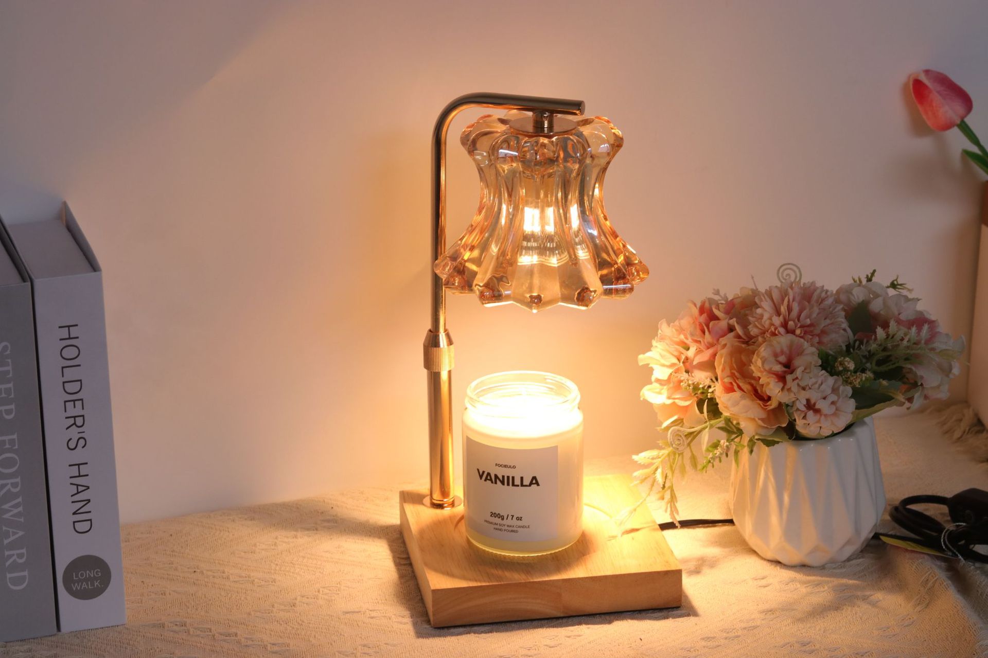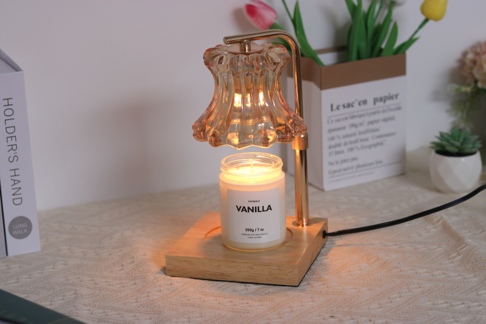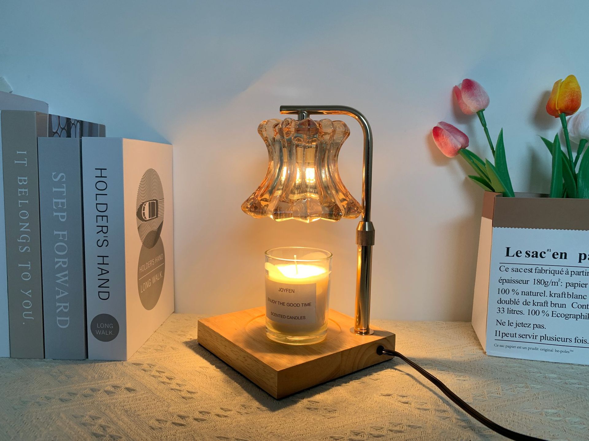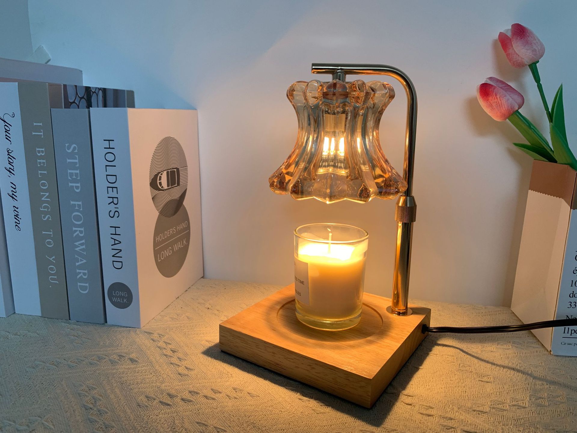 本灯具不配带香薰蜡烛,请您自行购买。本灯具用的是GU10灯泡,下单即赠送2个50瓦卤素灯泡。