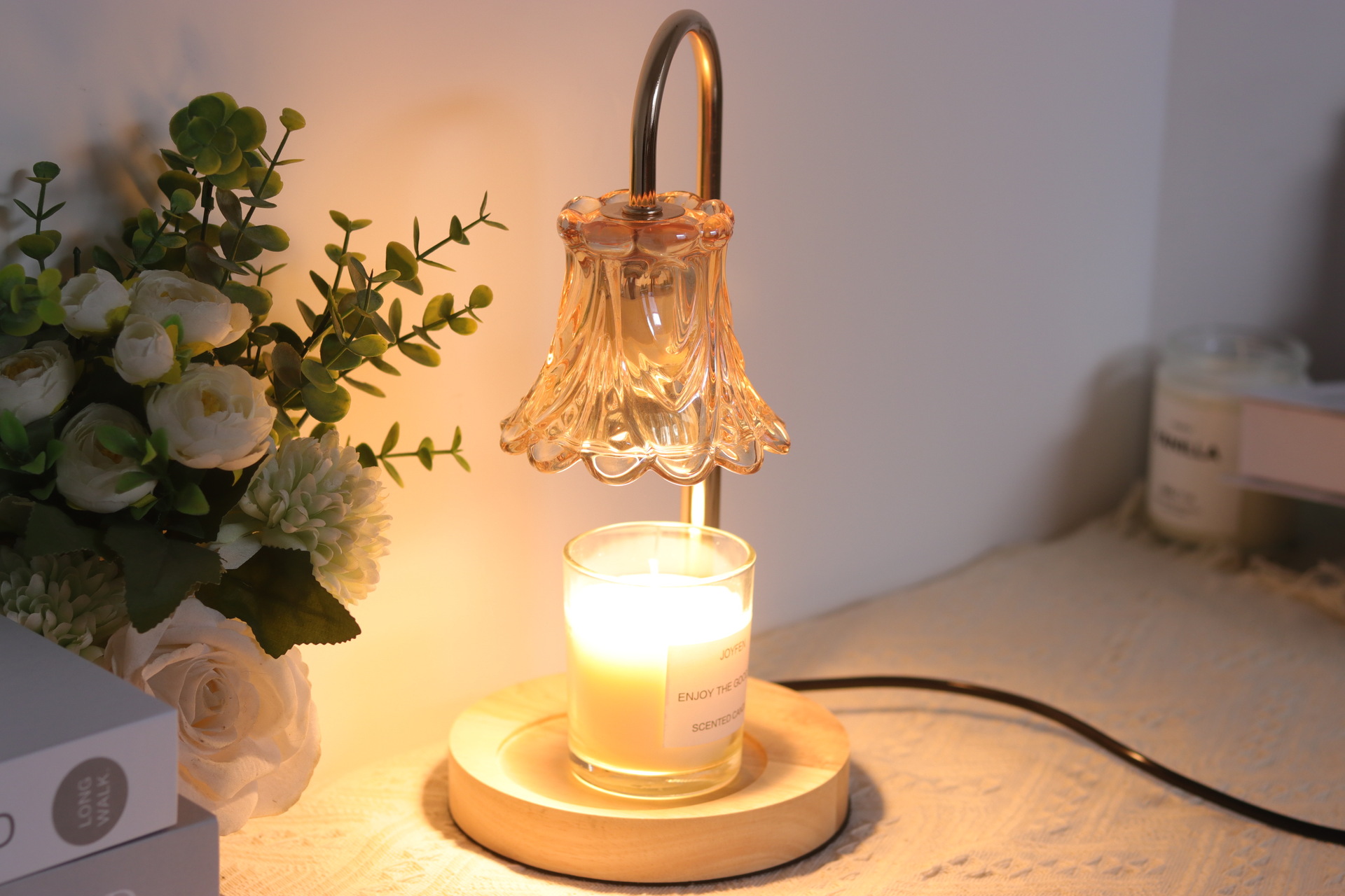 本灯具不配带香薰蜡烛,请您自行购买。本灯具用的是GU10灯泡,下单即赠送2个50瓦卤素灯泡。