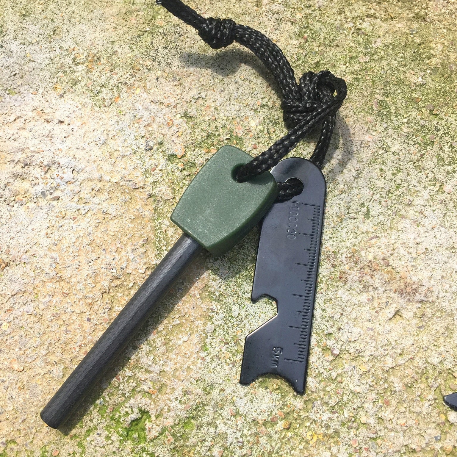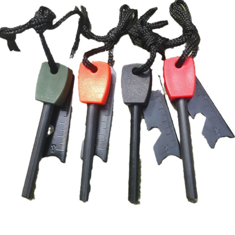 使用方法:用刮片将打火石部分刮下适量碎屑于于一小堆干草、叶子或是纸中 ,迅速划镁条产生火星引燃。当火焰产生后,加入细薄的木棒,即可形成火焰。