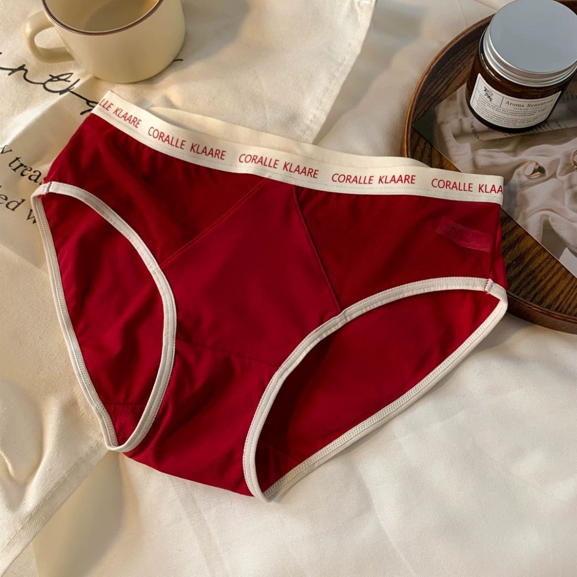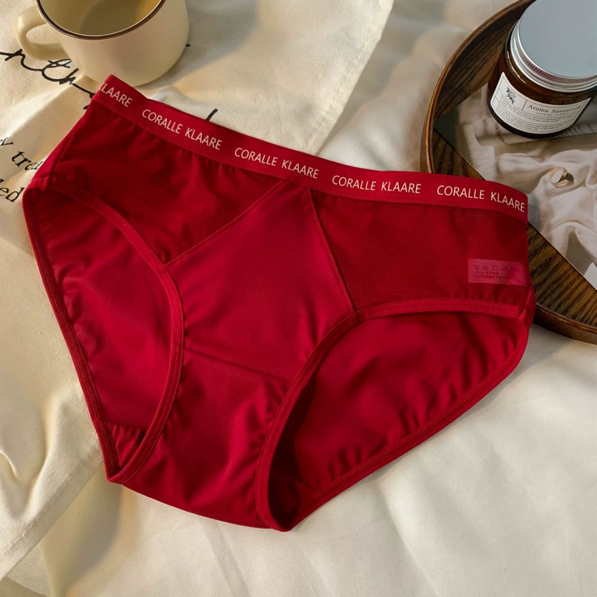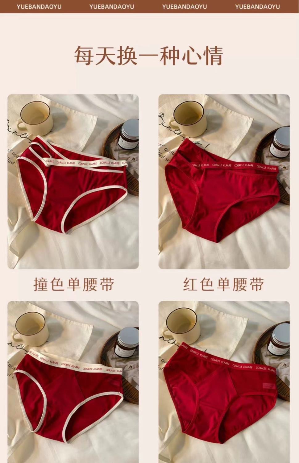 大码女士内裤女中腰胖MM200斤提臀透气大红喜庆性感纯欲风三角裤 投诉