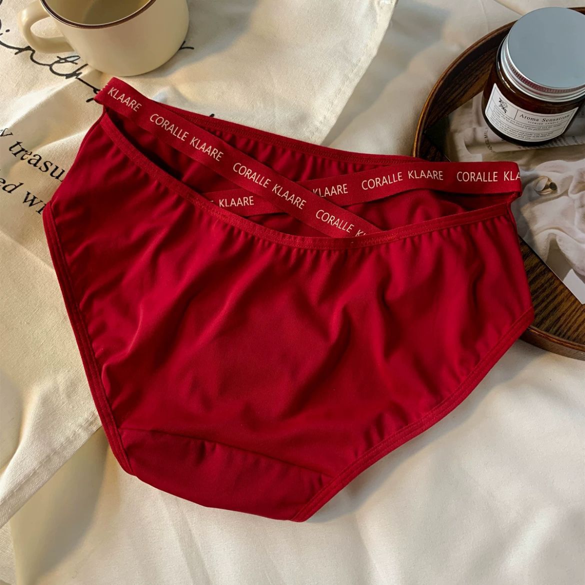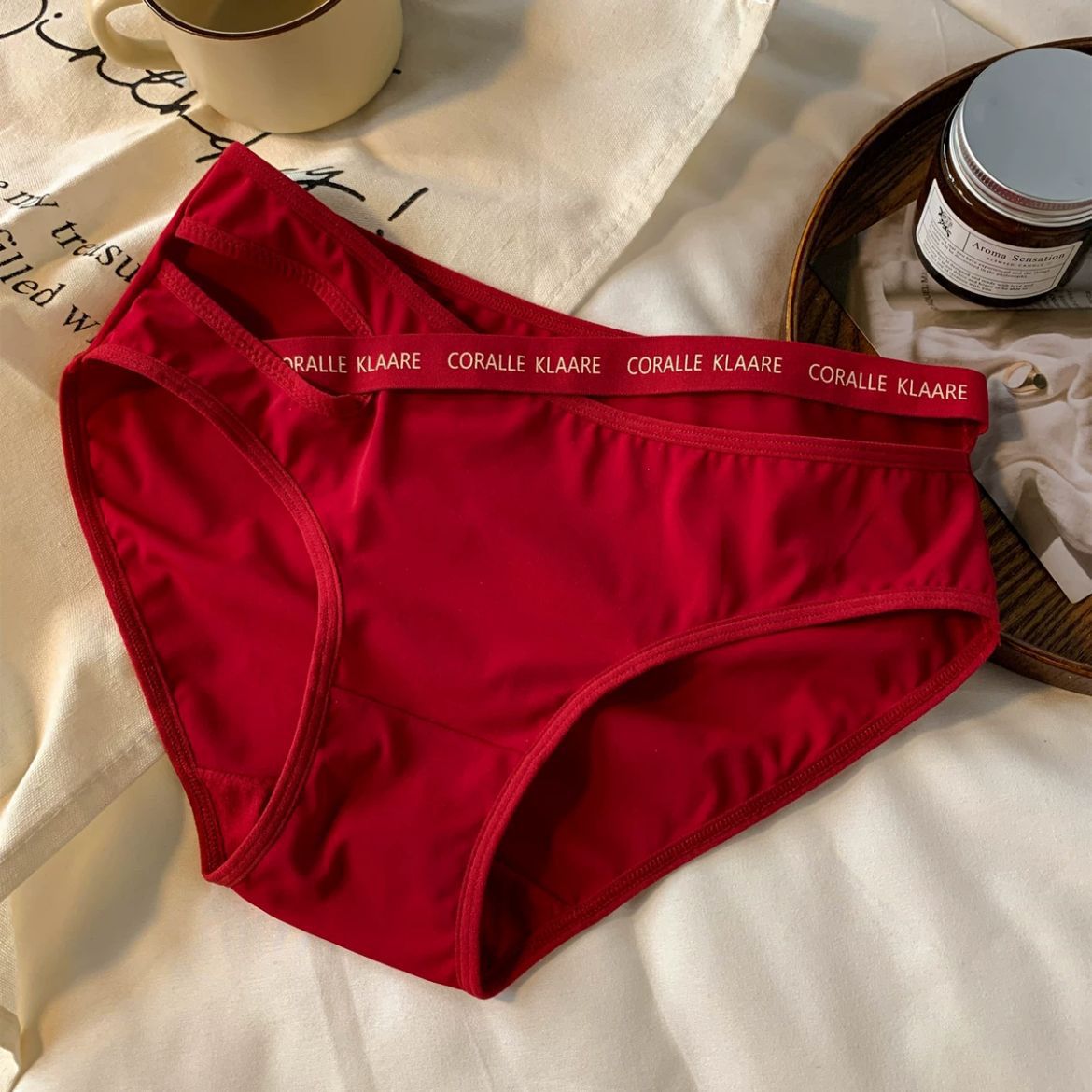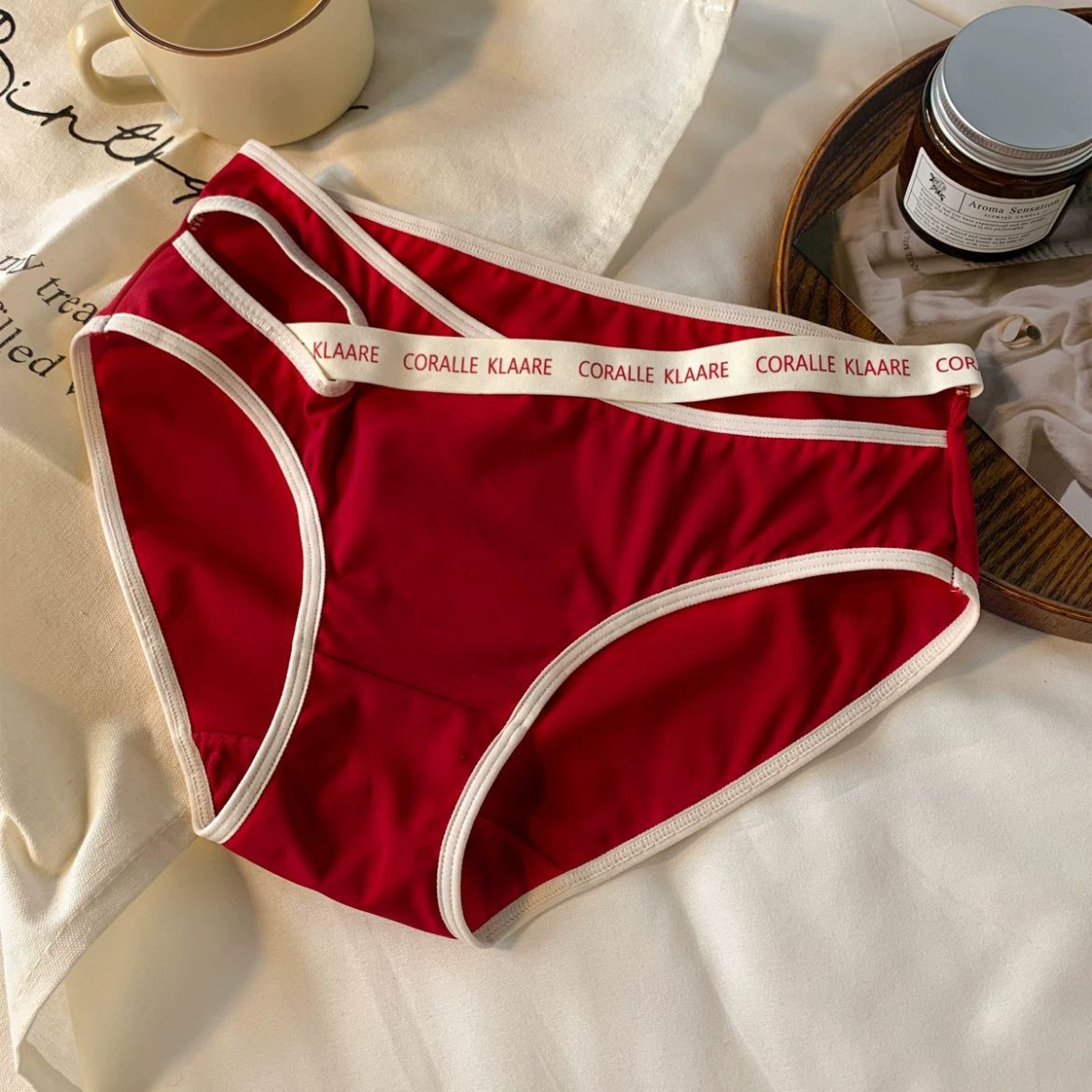 大码女士内裤女中腰胖MM200斤提臀透气大红喜庆性感纯欲风三角裤 投诉