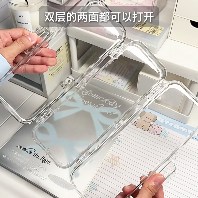 透明三叠笔盒ins风高颜值大容量塑料笔双层文具纳盒女孩 投诉