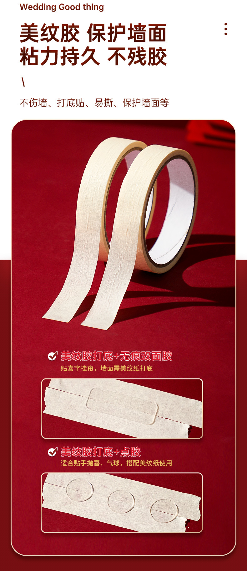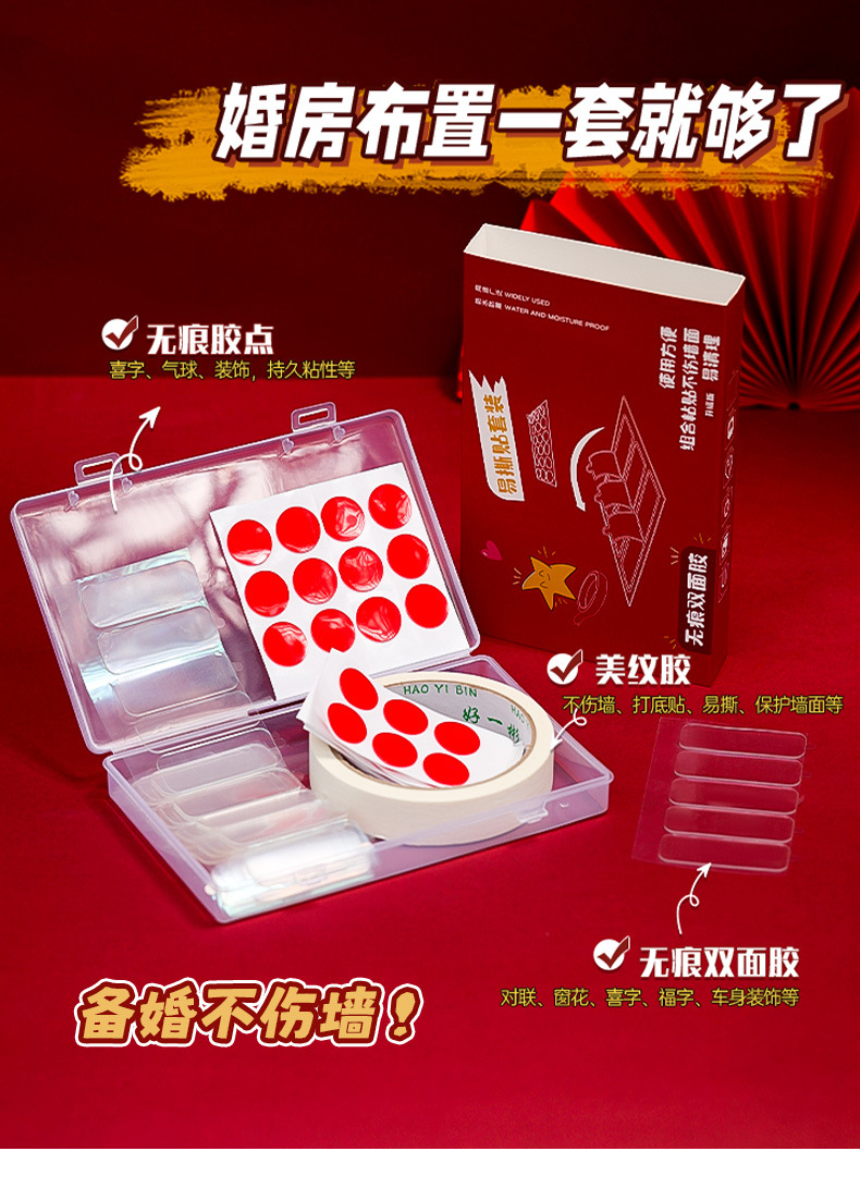结婚婚房装饰双面胶美纹纸婚庆用品不留胶保护墙气球点胶无痕布置