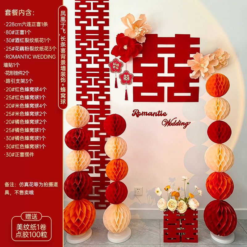 结婚男方婚房客厅沙发背景墙装饰女方卧室新房婚礼喜字贴布置套装