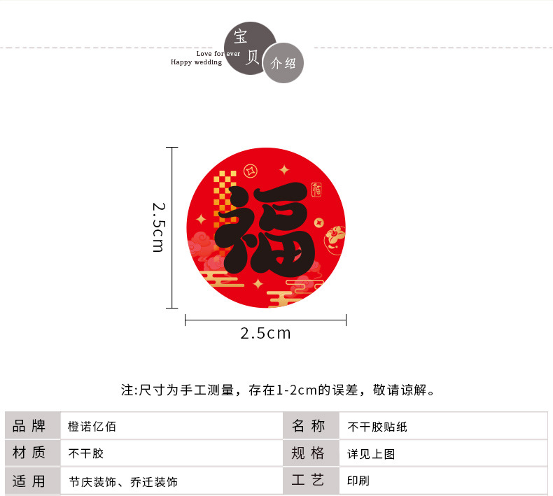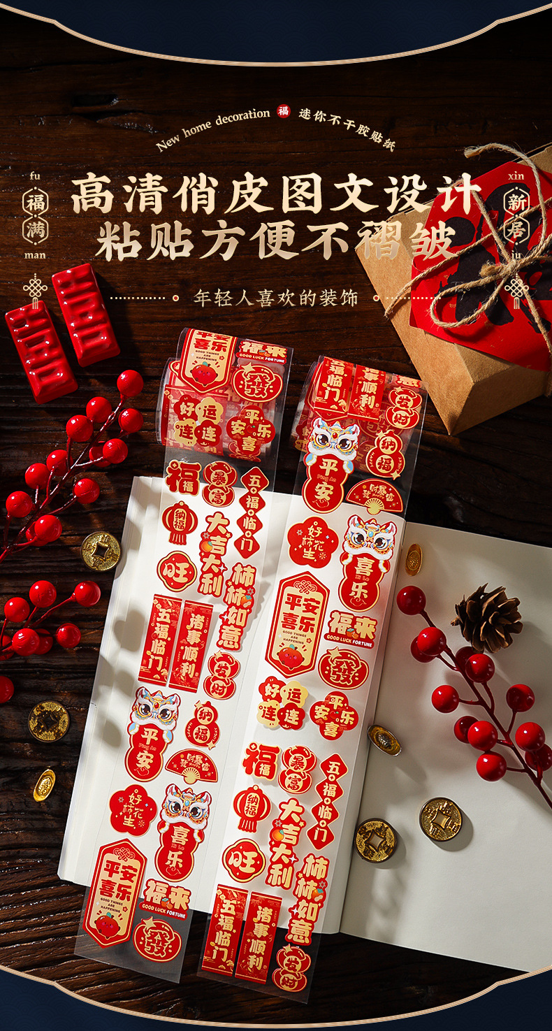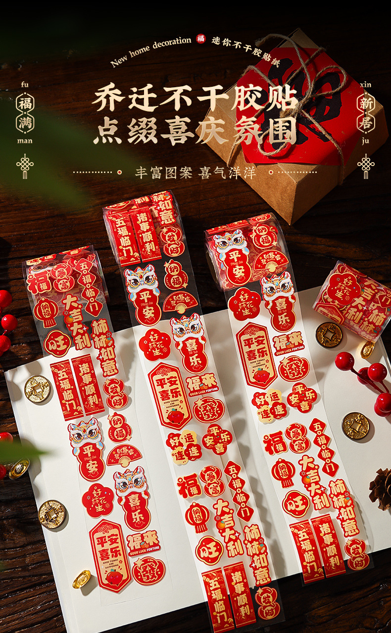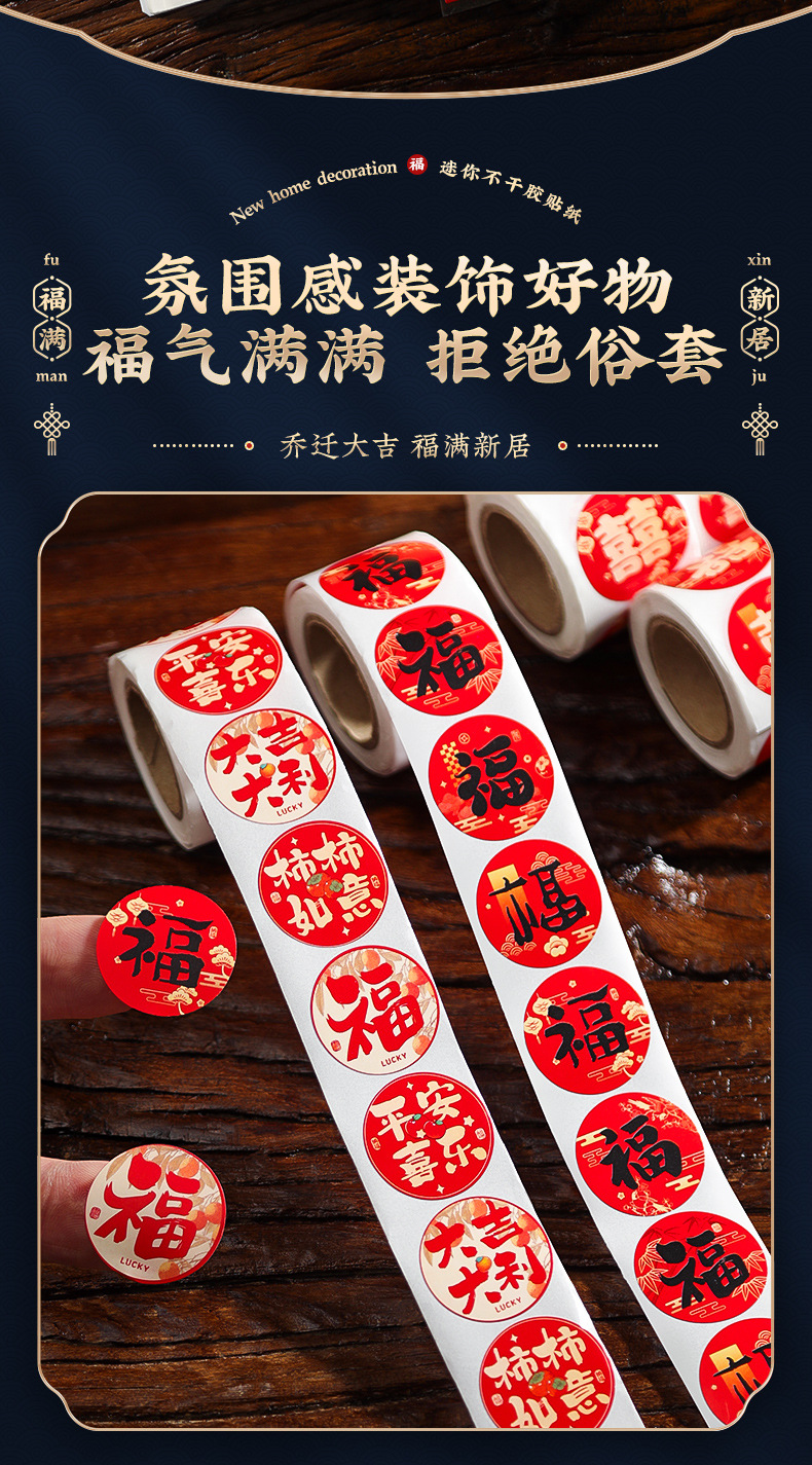创意迷你小福字贴红包封口贴自粘福字贴新居布置搬家乔迁福字贴纸小福字贴乔迁之喜装饰用品布置墙贴春节过年门贴窗花贴纸一件批发