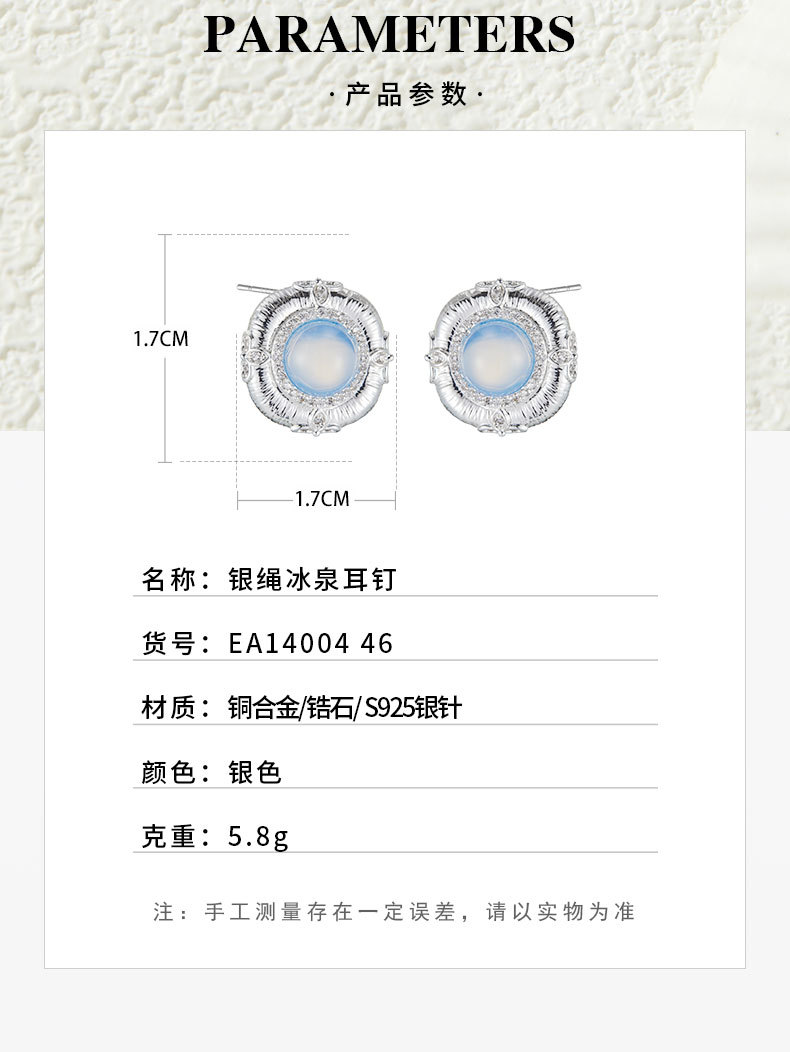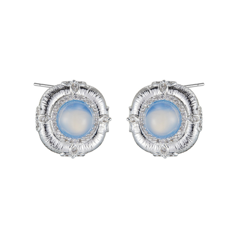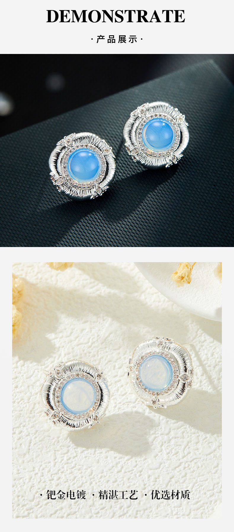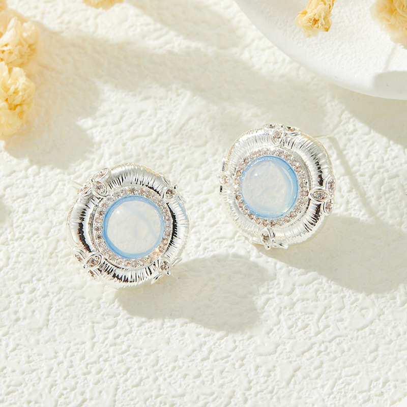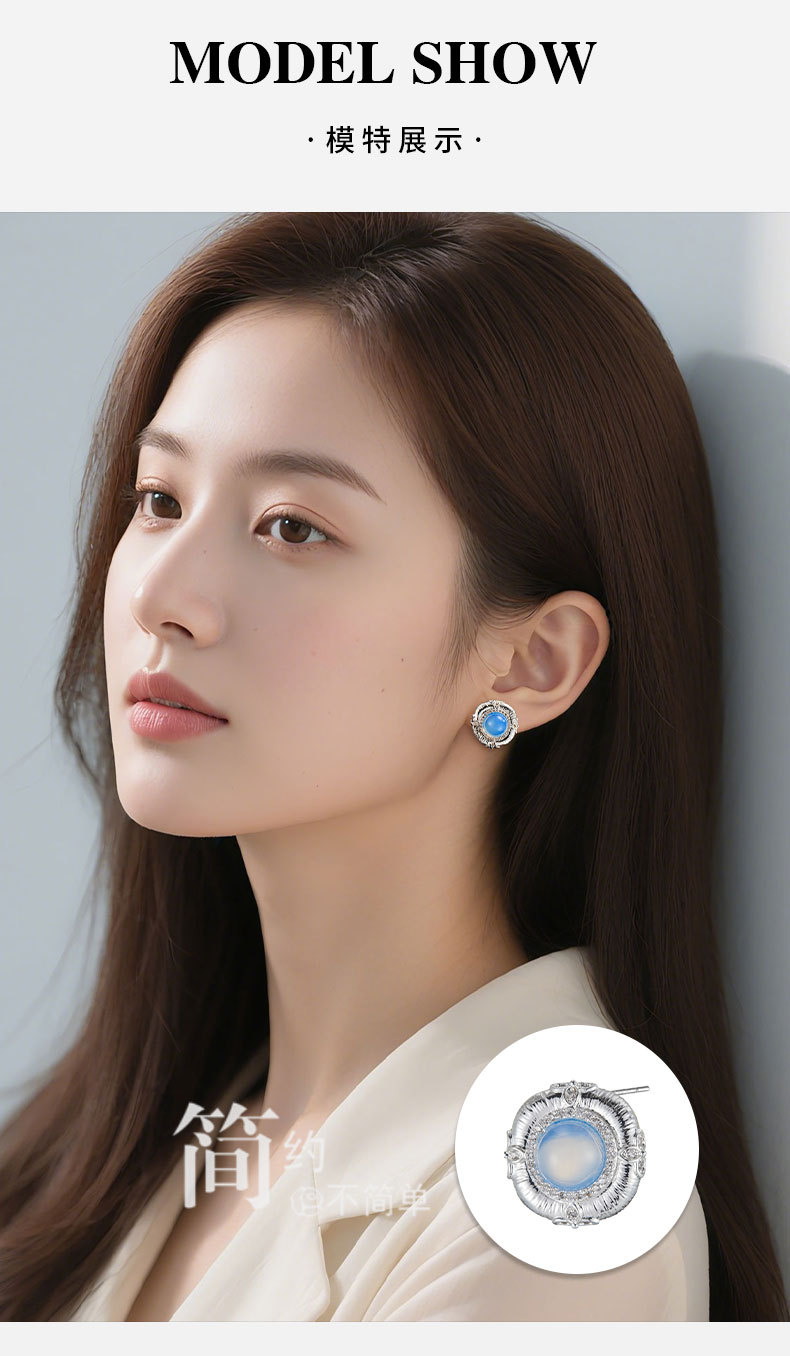 轻奢高级感蓝蛋白浮雕设计耳钉必入款铜合金真金电镀s925银针耳饰 投诉