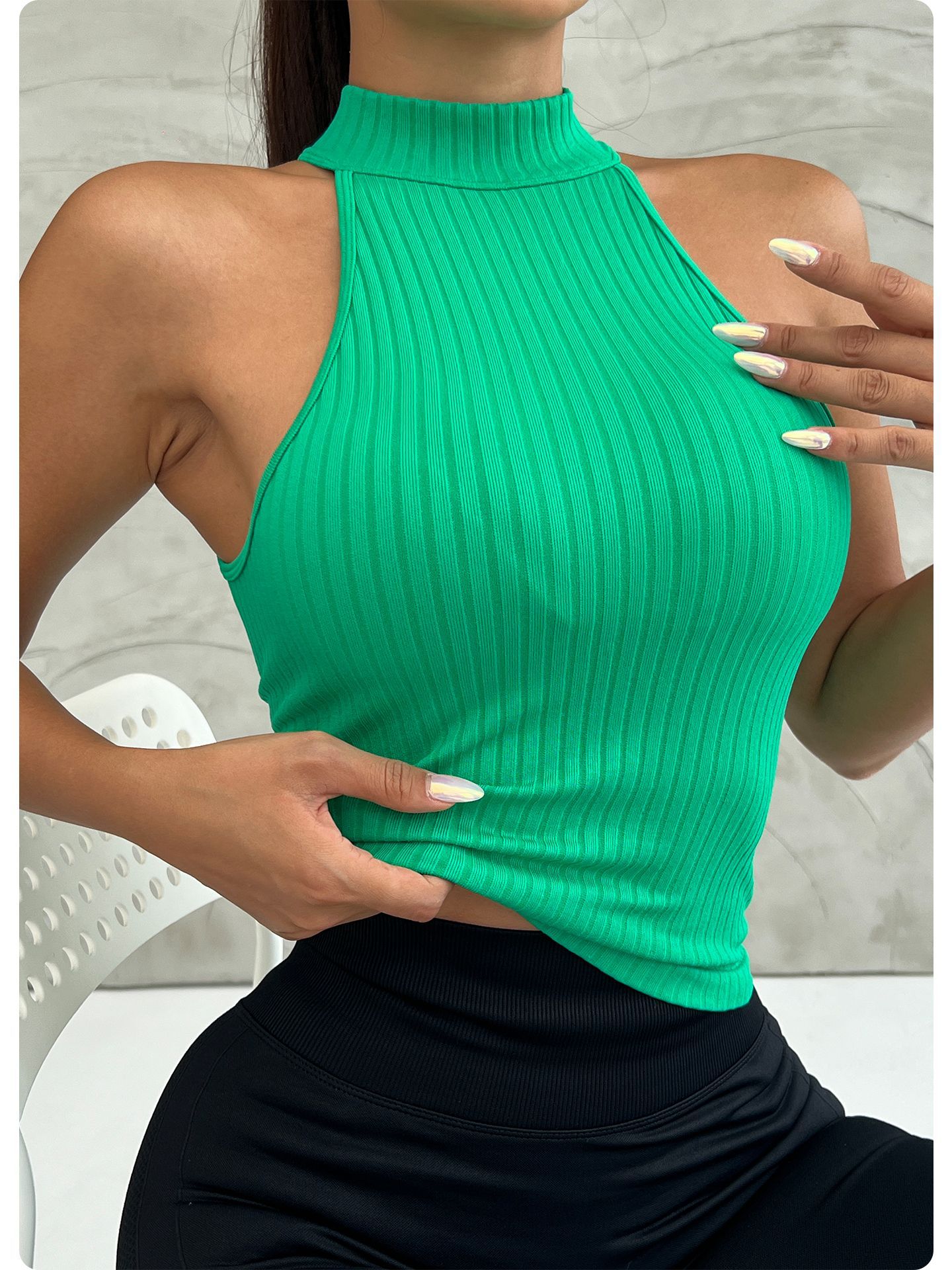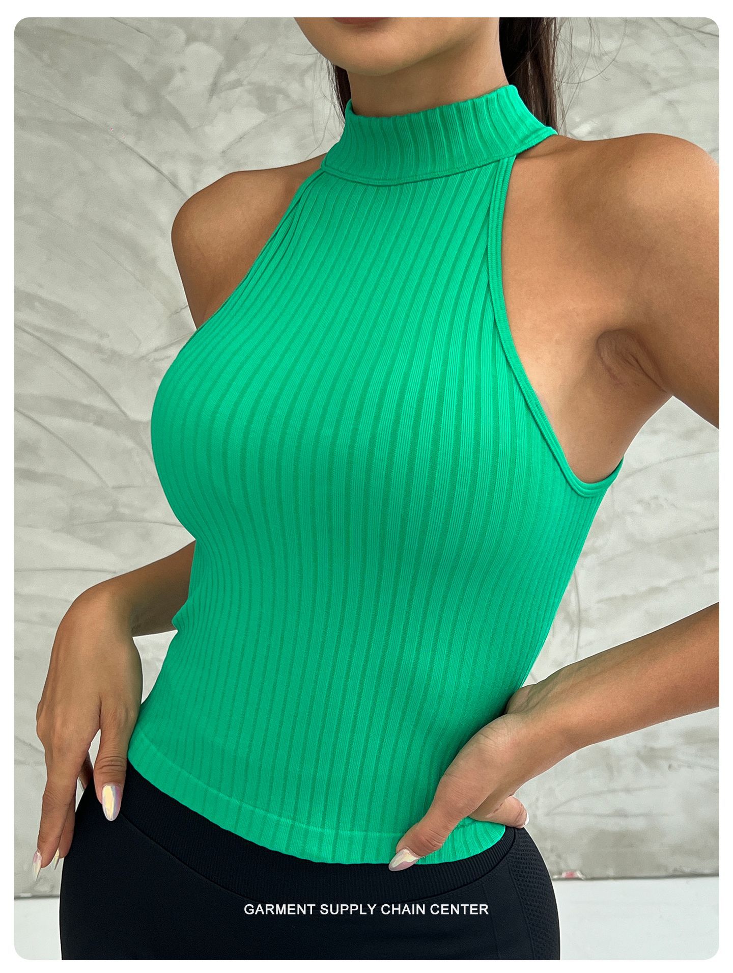 【浙锦】跨境欧美透气运动瑜伽背心挂脖美背高弹速干健身内衣