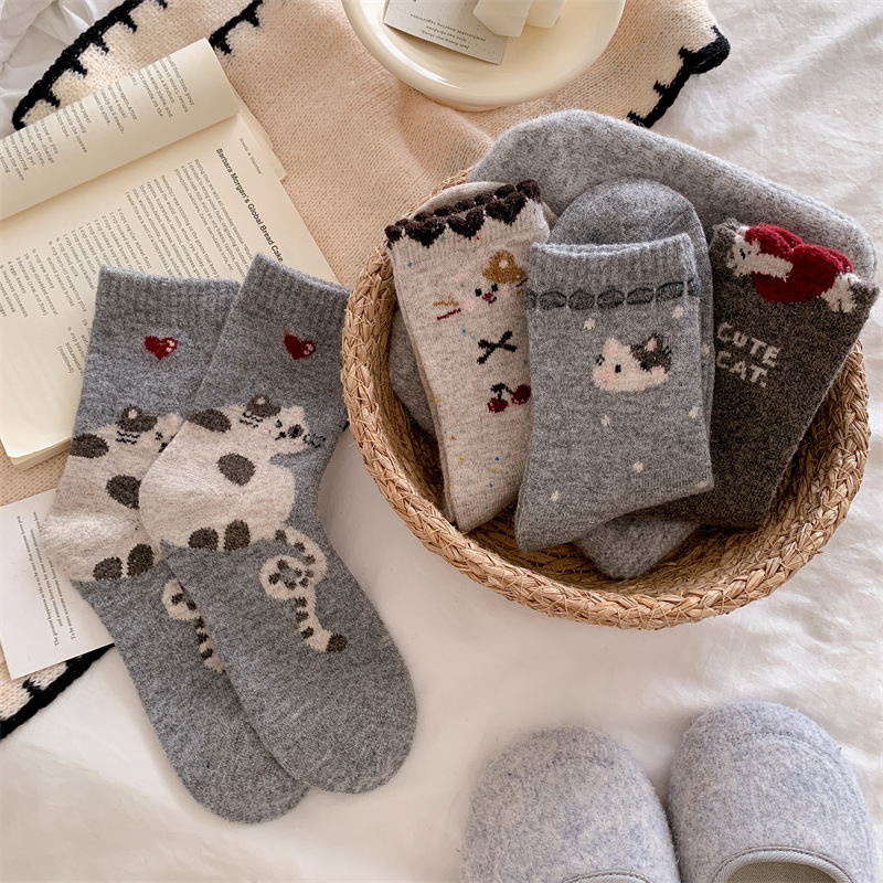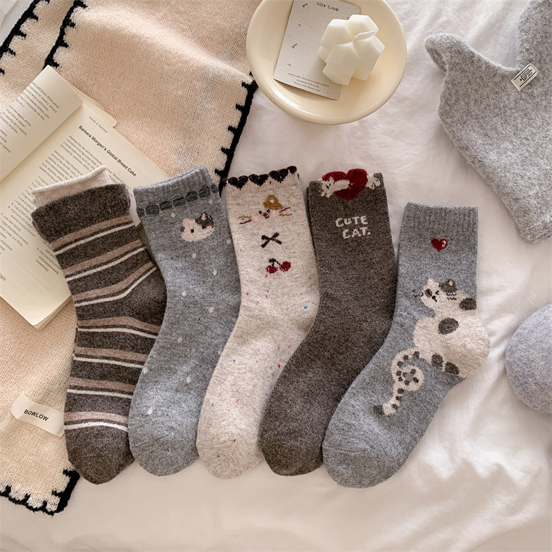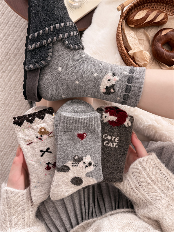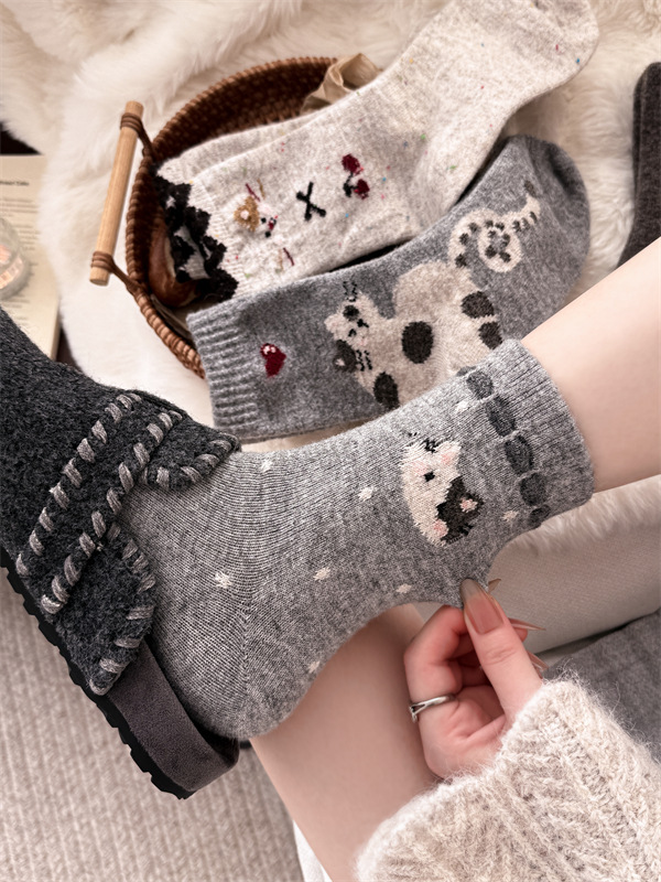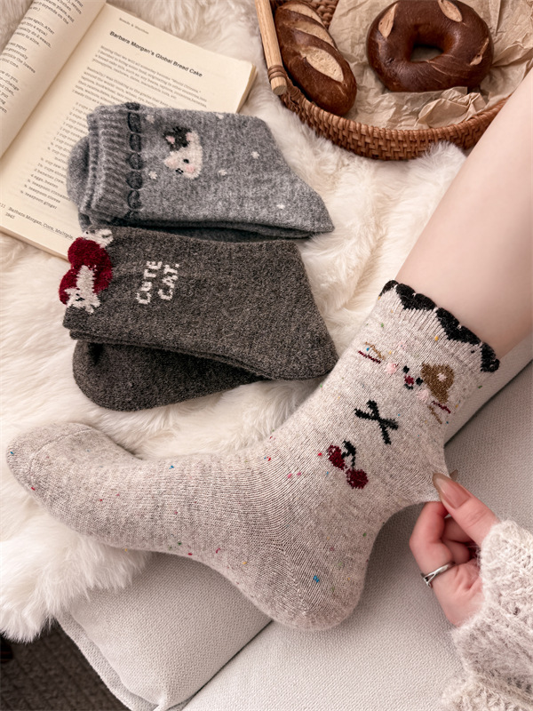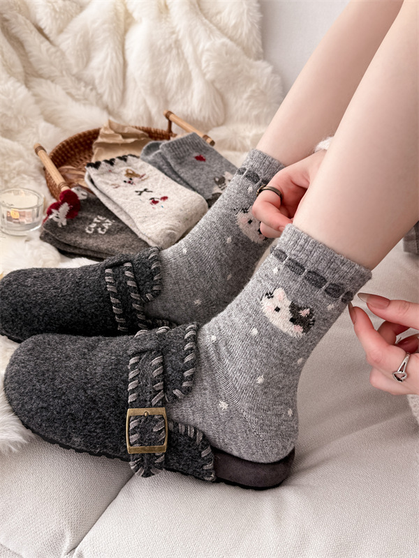 复古费尔岛羊毛袜子女日系学院风点子纱猫咪加厚中筒袜保暖堆堆袜 English | 投诉