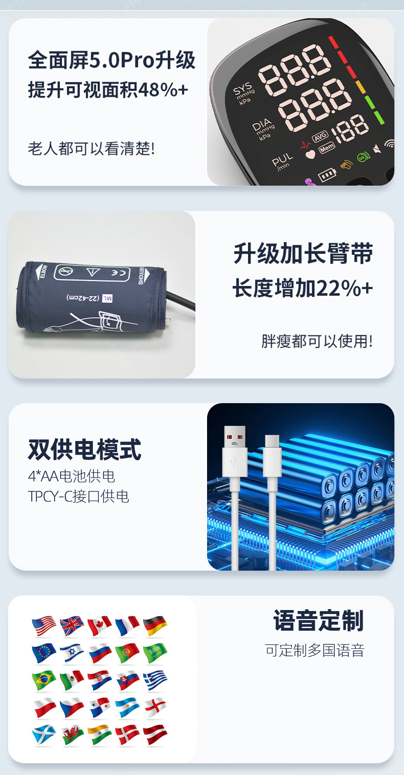 臂带尺寸: 22-42cm
