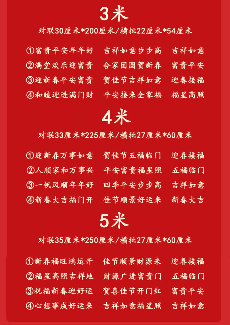 | 5#祝福新春迎好运 贺喜佳节开门红 | ¥708 | 15000对可售 |