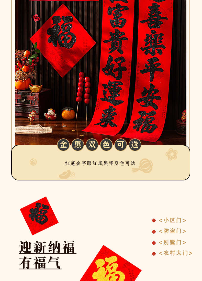 | 植绒金粉/黑粉对联【送一张门幅】 | ¥871 | 9988件可售 |