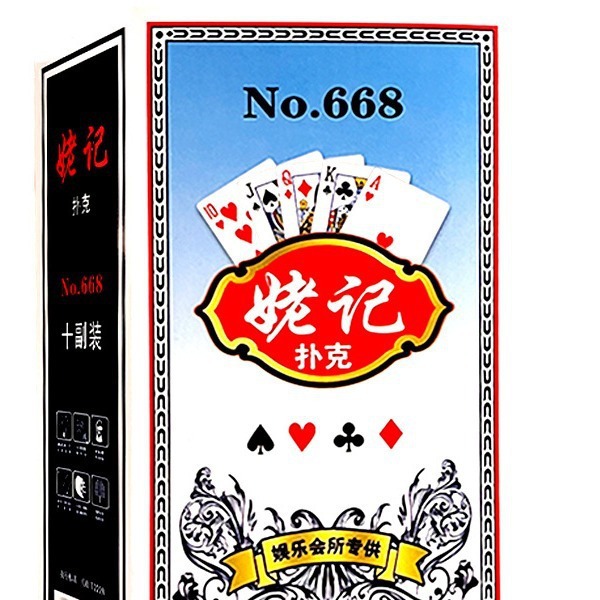 材质: 中华纸 产品类别: 扑克 品牌: 姥记 规格: 57*87 颜色: 姥记668,姥记616 重量: 0.5 kg/副