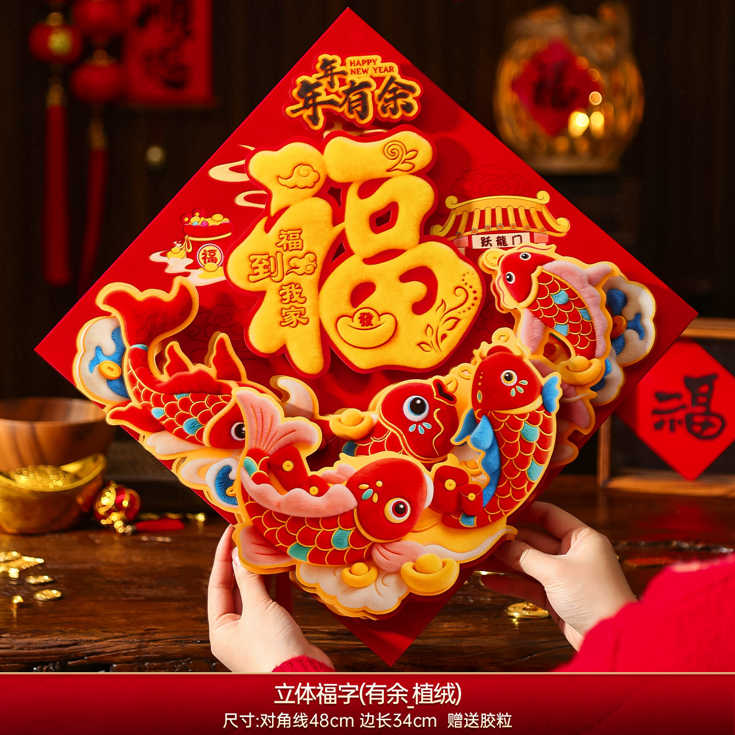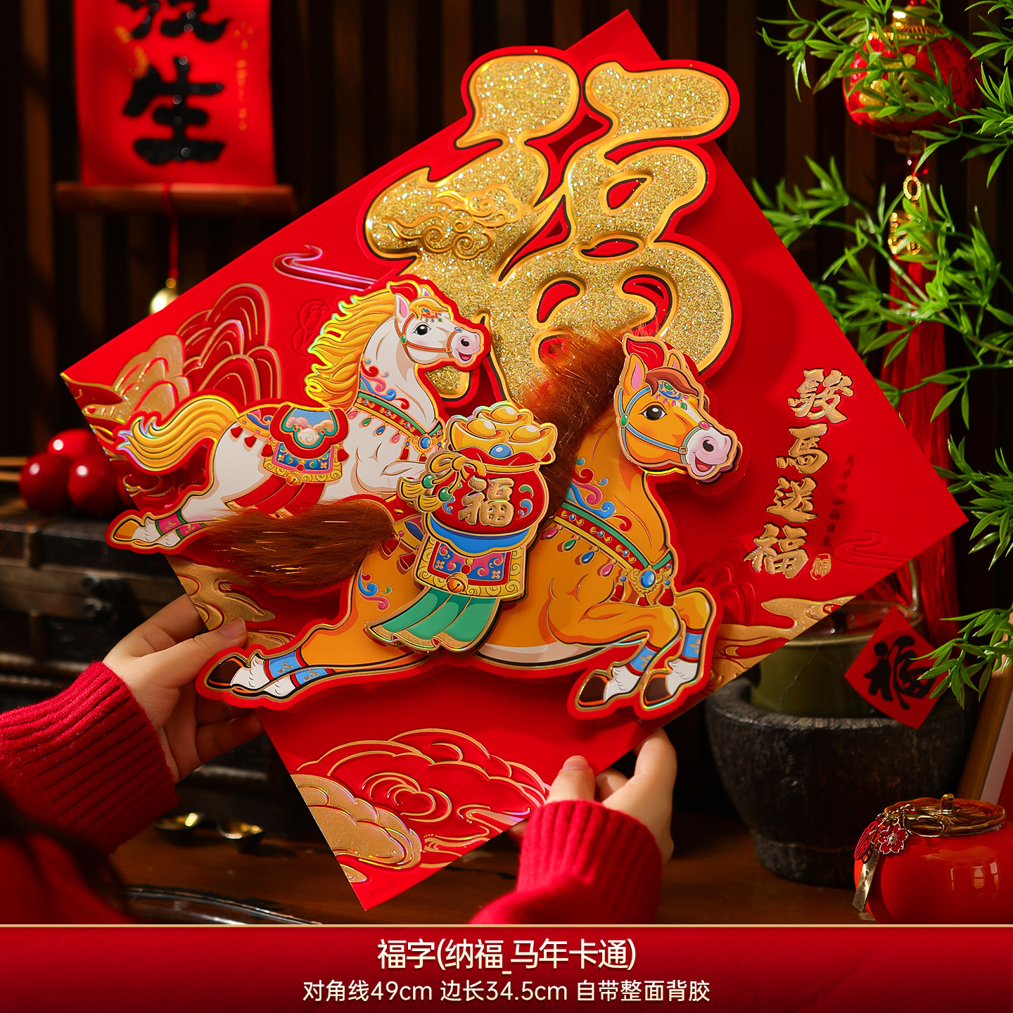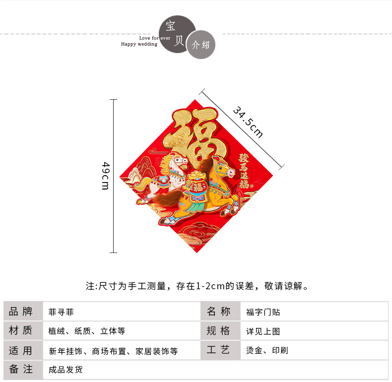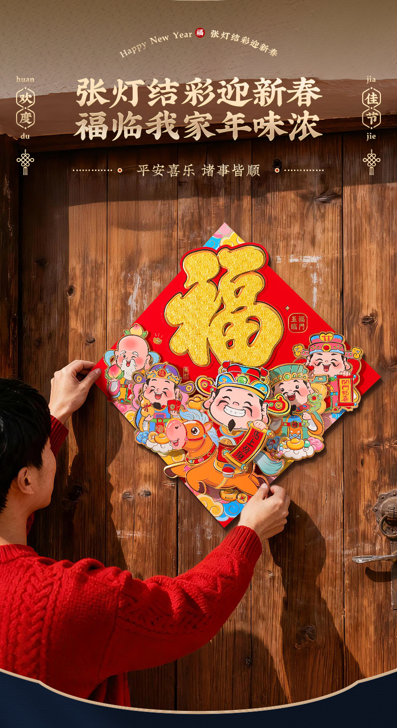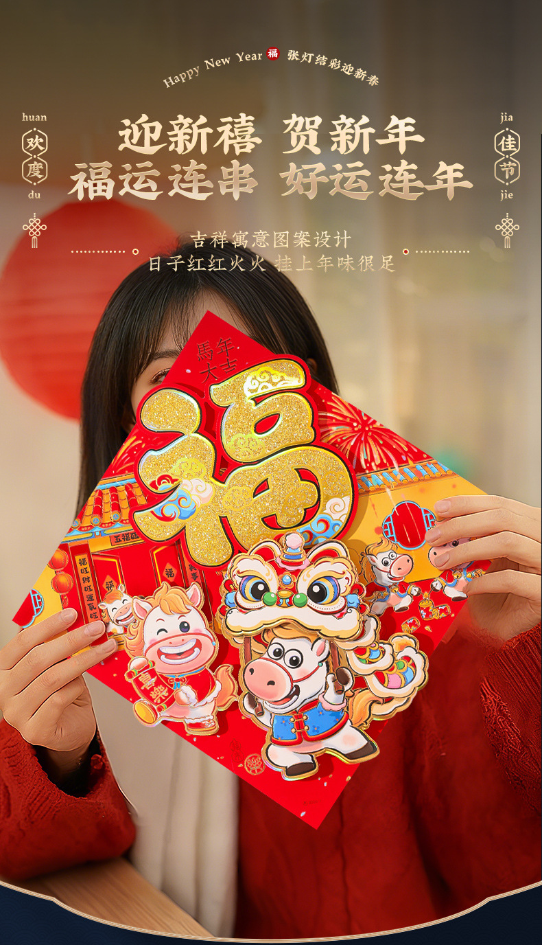 福字门贴2026年马年立体绒布自粘入户门春节过年大门新年福字帖2026新款马年福字贴纸过年春节立体福字门贴植绒大门新年装饰年货