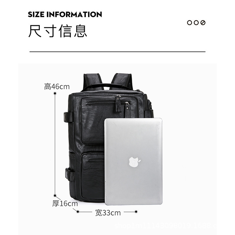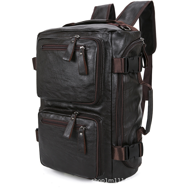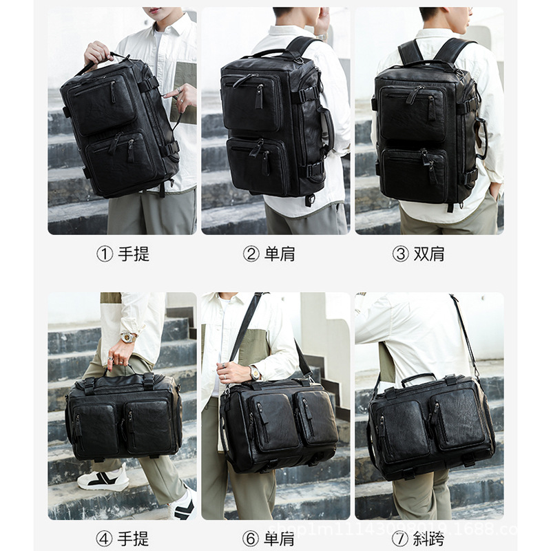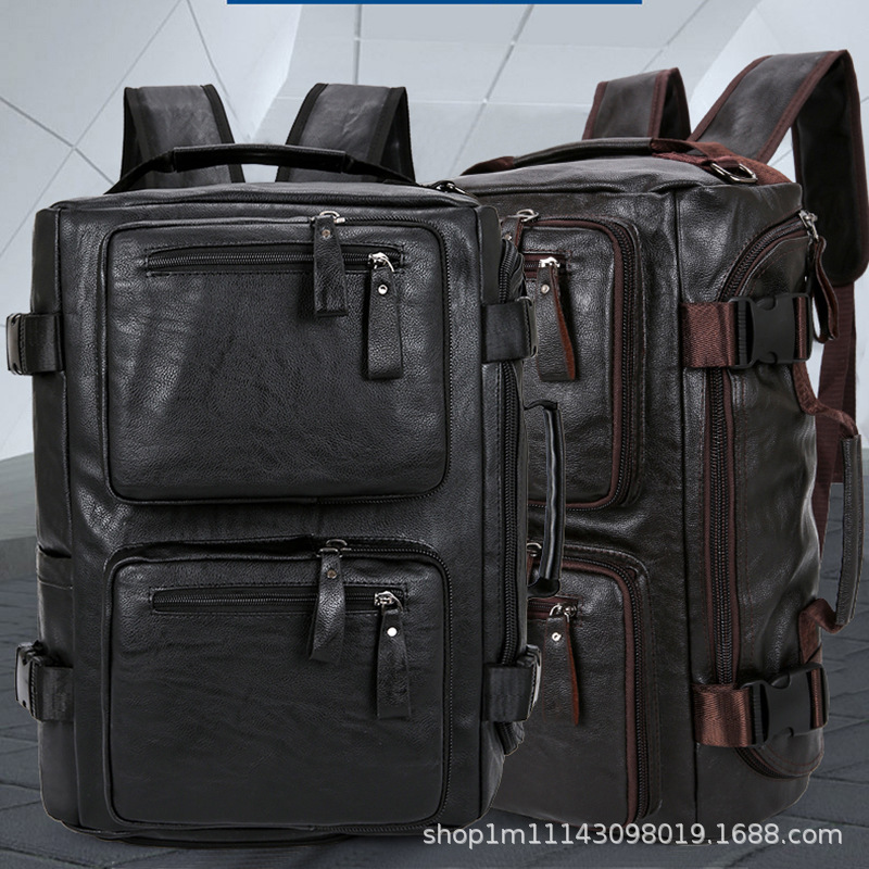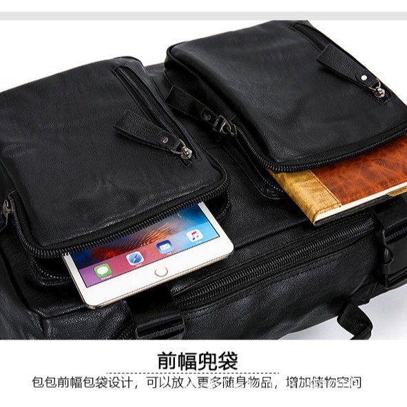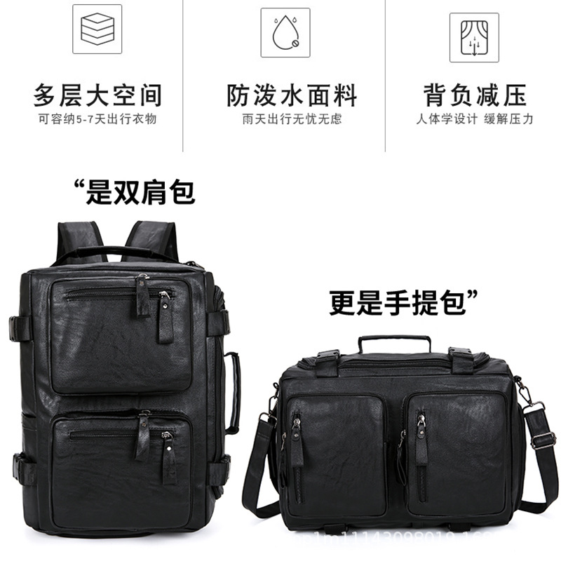 时尚皮革款双肩背包多功能旅行背包电脑包商务出差休闲单肩斜挎包 English | 投诉