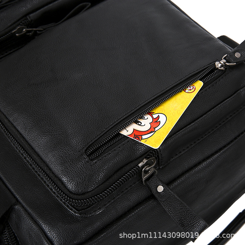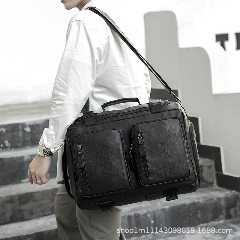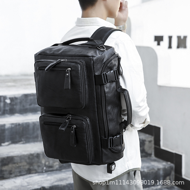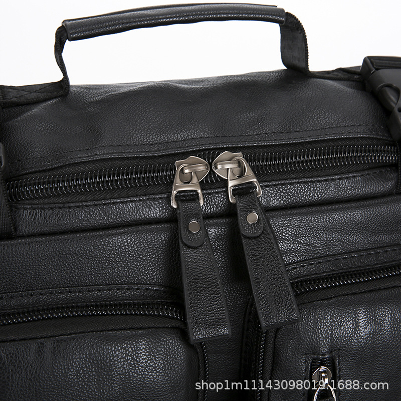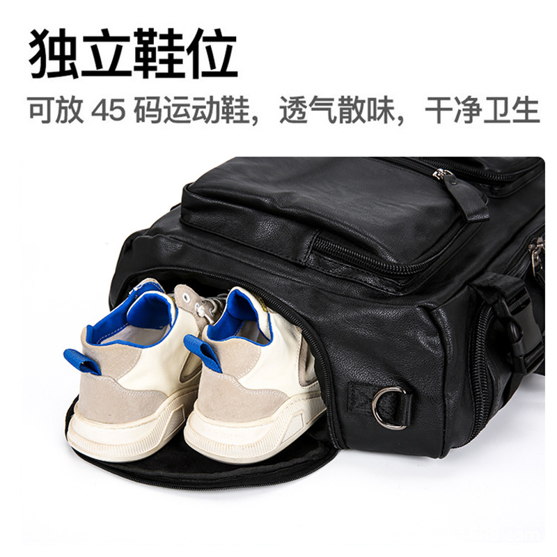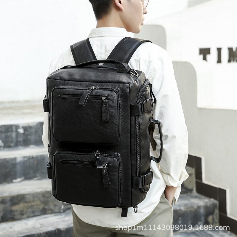 时尚皮革款双肩背包多功能旅行背包电脑包商务出差休闲单肩斜挎包 English | 投诉