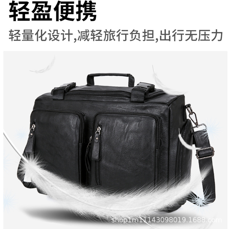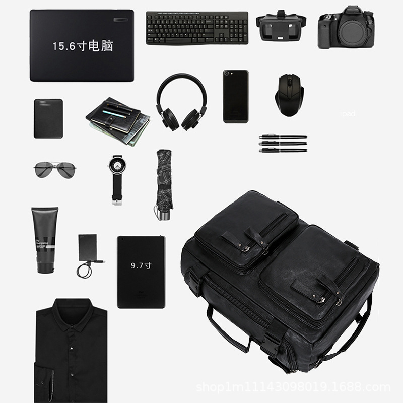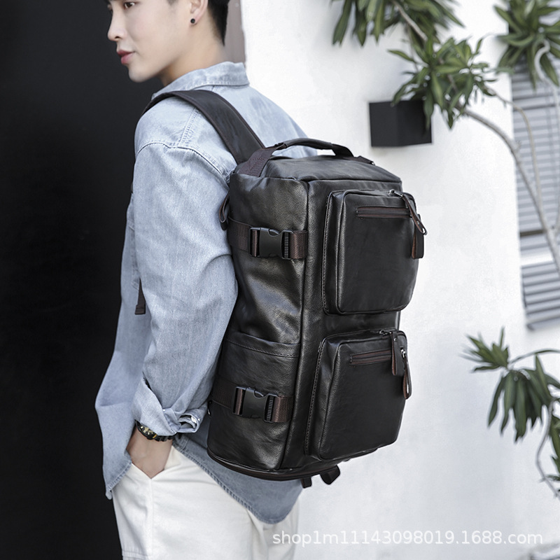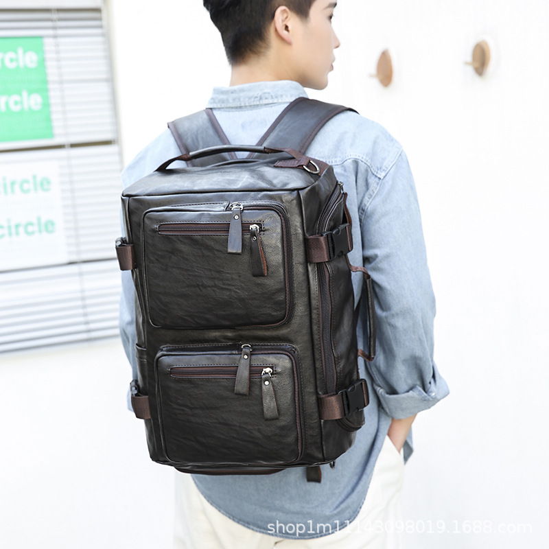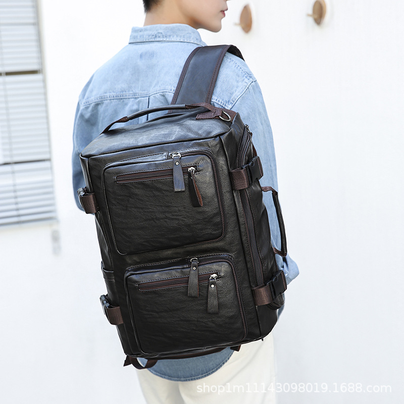 材质: PU 功能: 可收纳 里料质地: 涤纶 皮质特征: 压花皮 容纳电脑尺寸: 15英寸 容量: 20-35L 适用性别: 中性/男女均可 颜色: 黑色,深棕色 适用场景: 休闲旅行 风格: 欧美复古 上市年份季节: 2023年冬季 货号: 1569-1 图案: 纯色 流行元素: 车缝线,拼接,锁扣,其他 重量: 1.0 kg/个