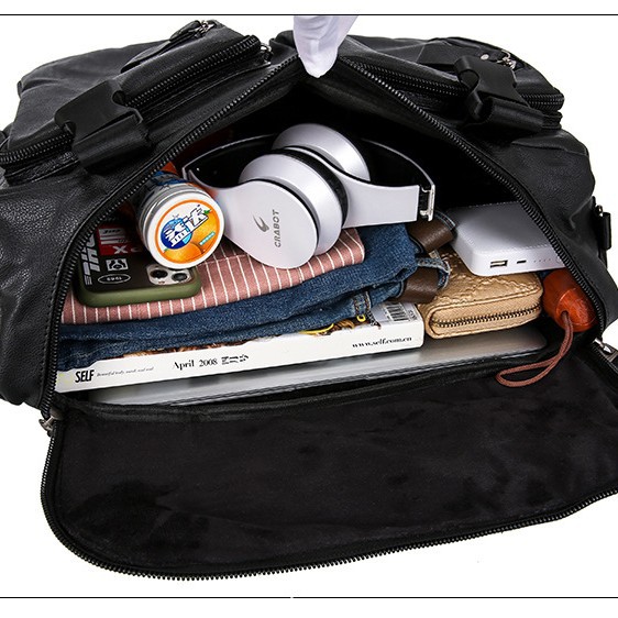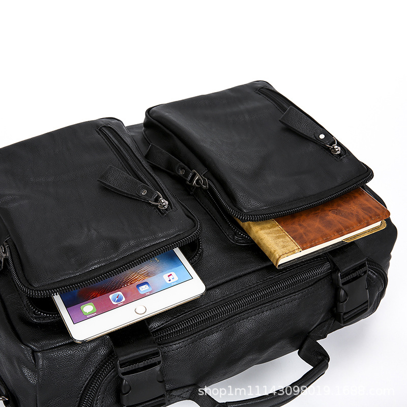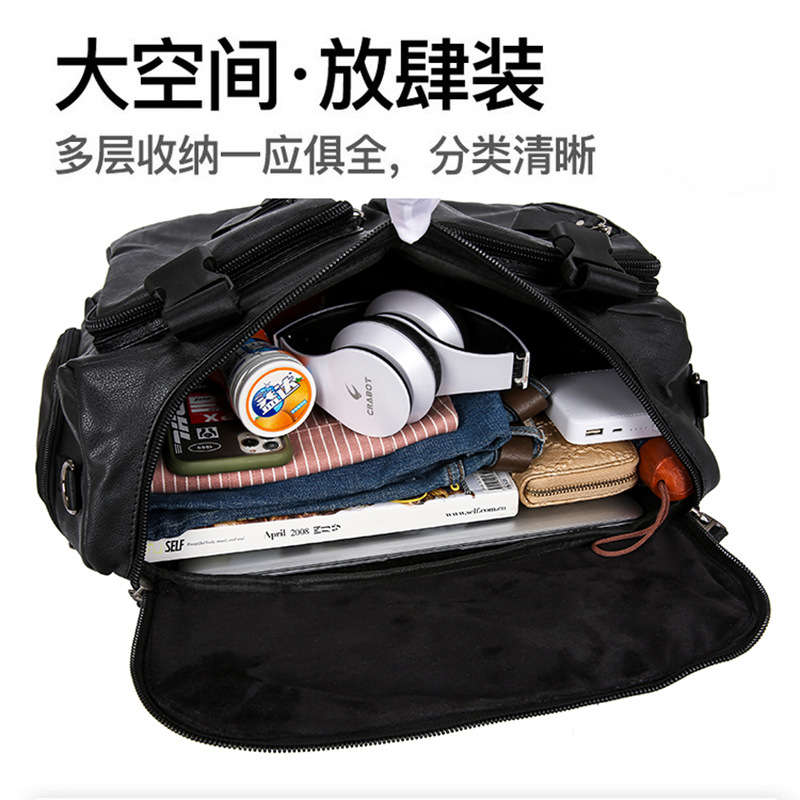 时尚皮革款双肩背包多功能旅行背包电脑包商务出差休闲单肩斜挎包
