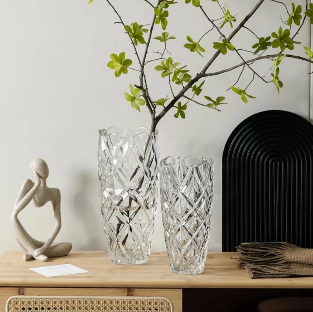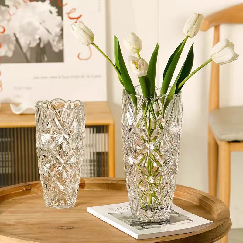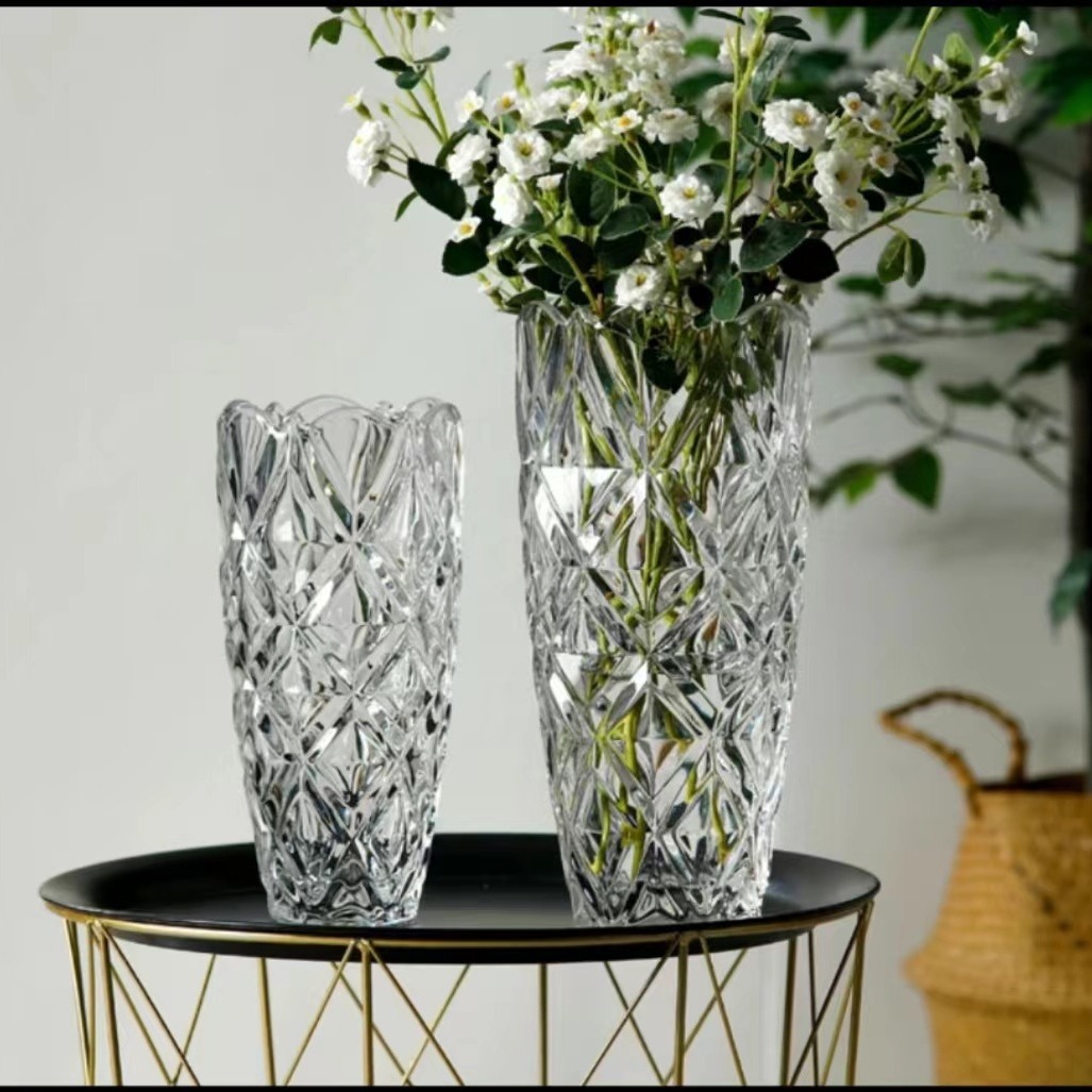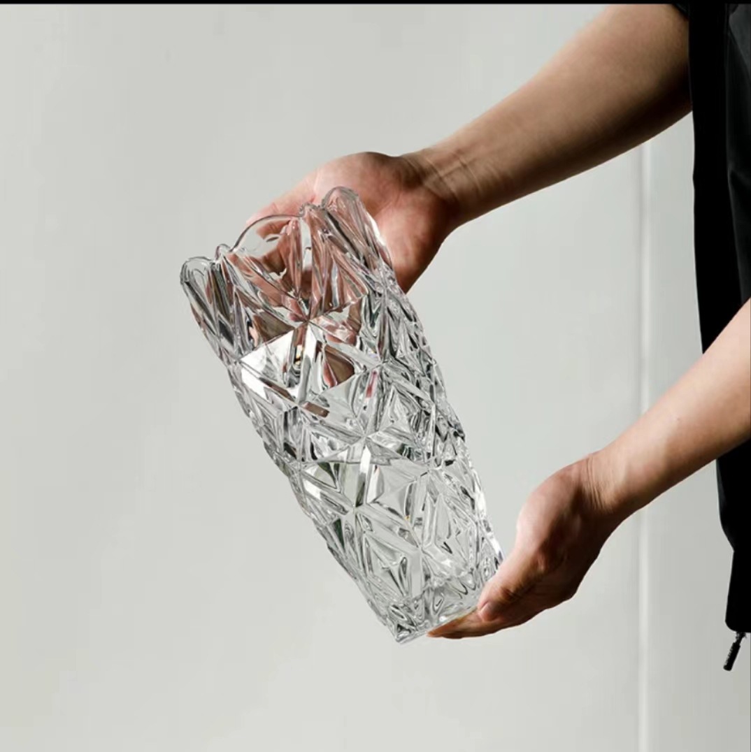 北欧轻奢水晶钻石玻璃花瓶透明璀璨客厅酒店插花玫瑰百合装饰摆件 English | 投诉