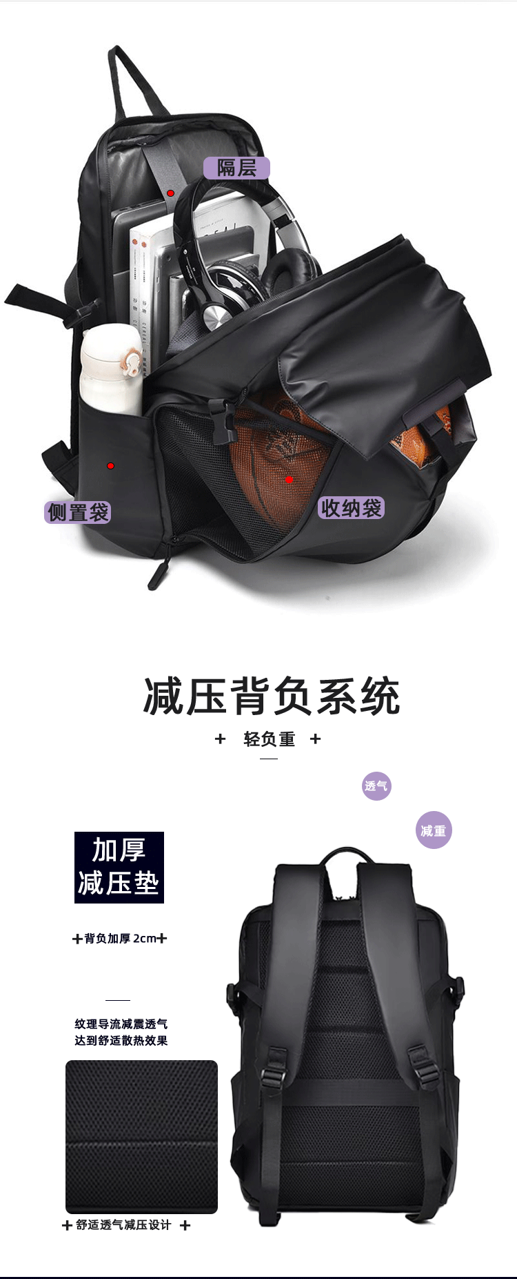 男士双肩包大容量多功能通勤商务背包笔记本电脑包休闲头盔篮球包 English | 投诉