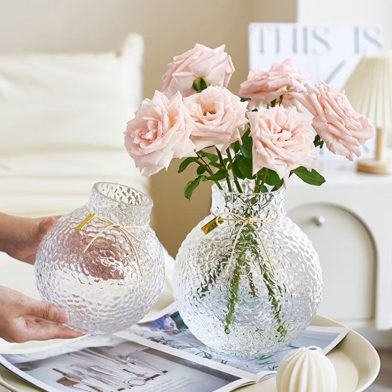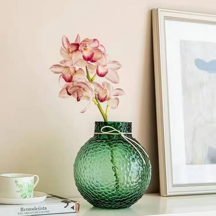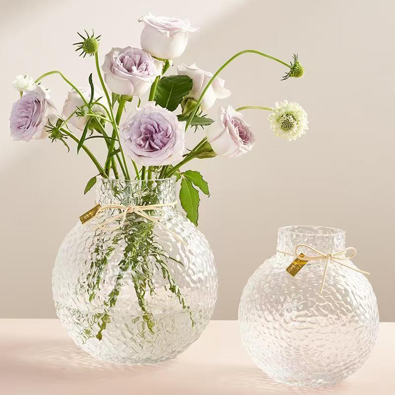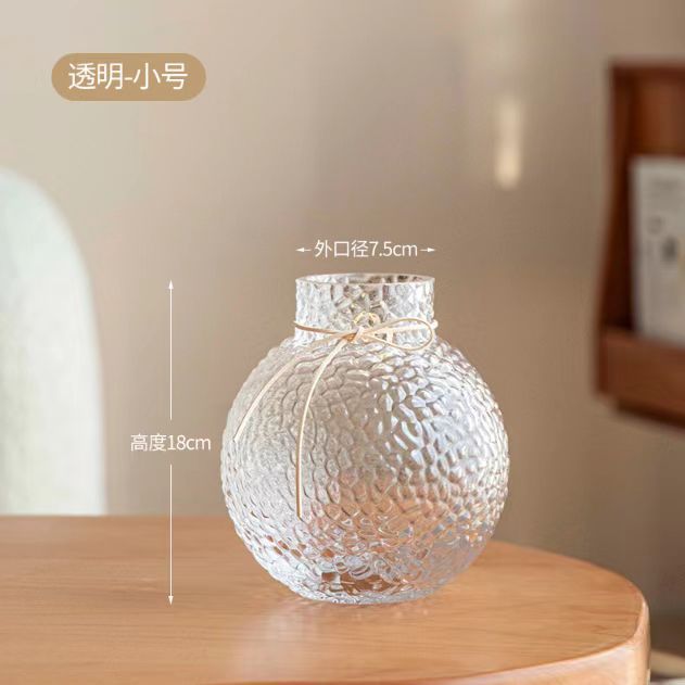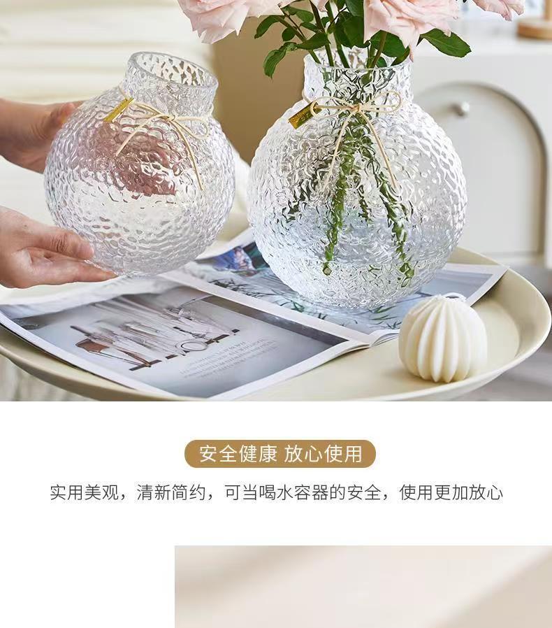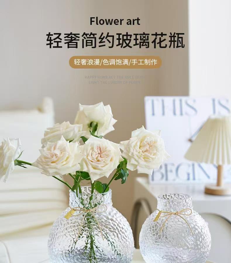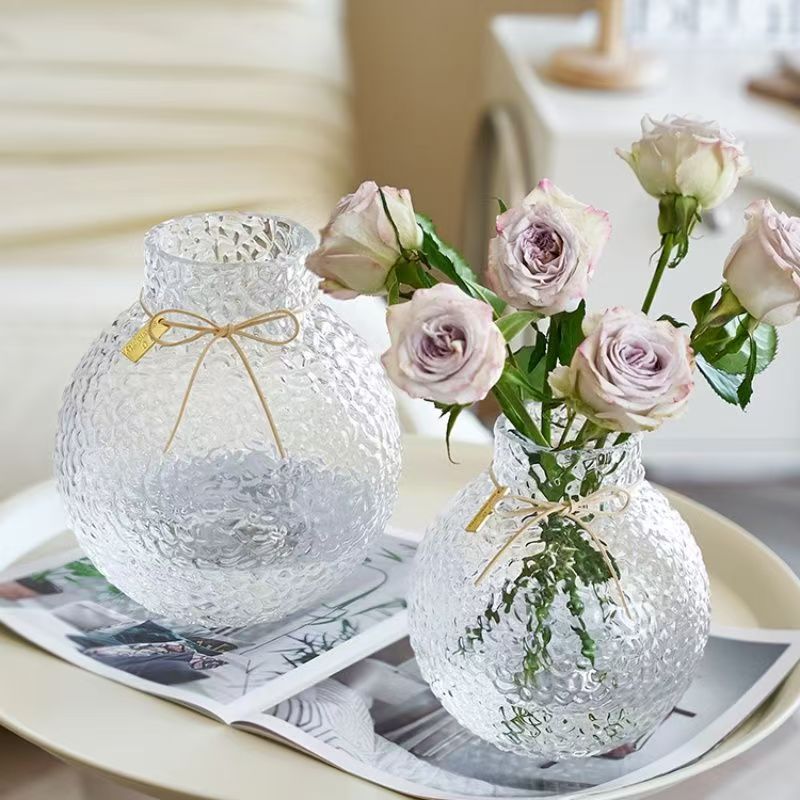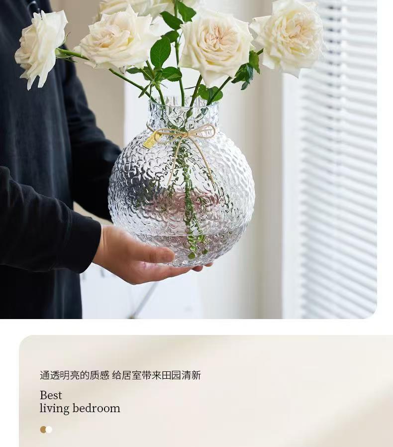 北欧现代简约球形新款小众诚信玻璃冰球花瓶摆件创意插花客厅大