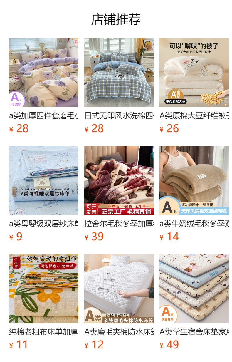 | 1.2床单款三件套【被套150*200床单160*230枕套一只】 | ¥3696 | 68886件可售 |