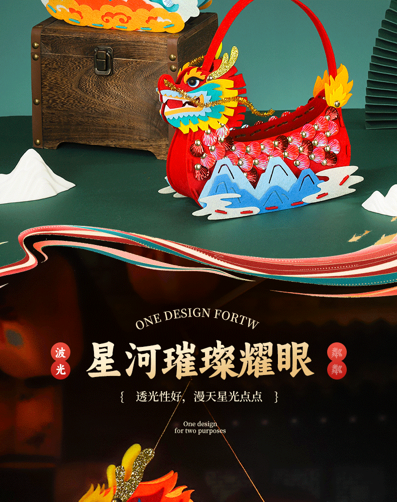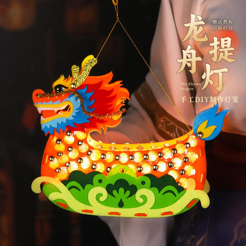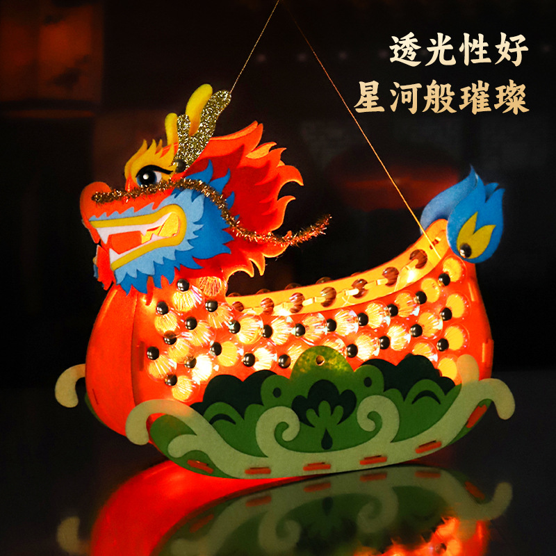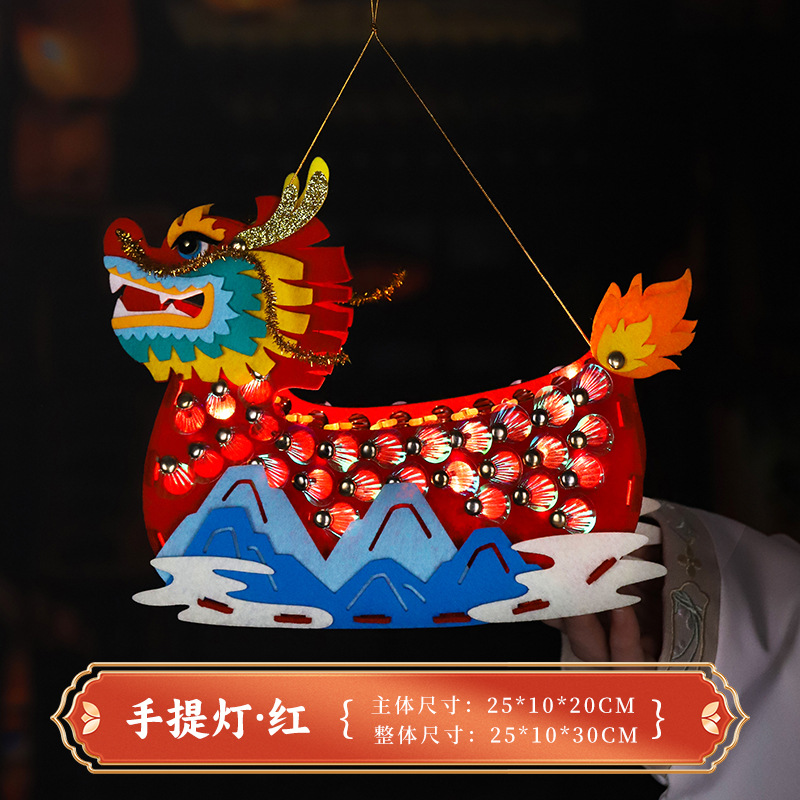 2026马年春节新年龙船模型儿童手提发光手工灯笼中国风diy材料包